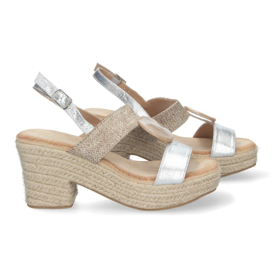 Sandalia de tacón para Mujer, Comodas, Detalle de Pedrería y Hebilla Ajustable, Piso de Yute.