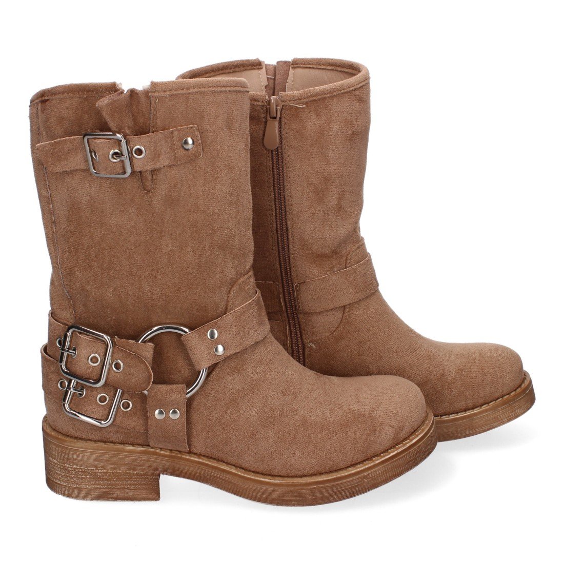 Botines de Mujer con Hebilla Metálica, Estilo Motero, Cómodas para el Día a Día.