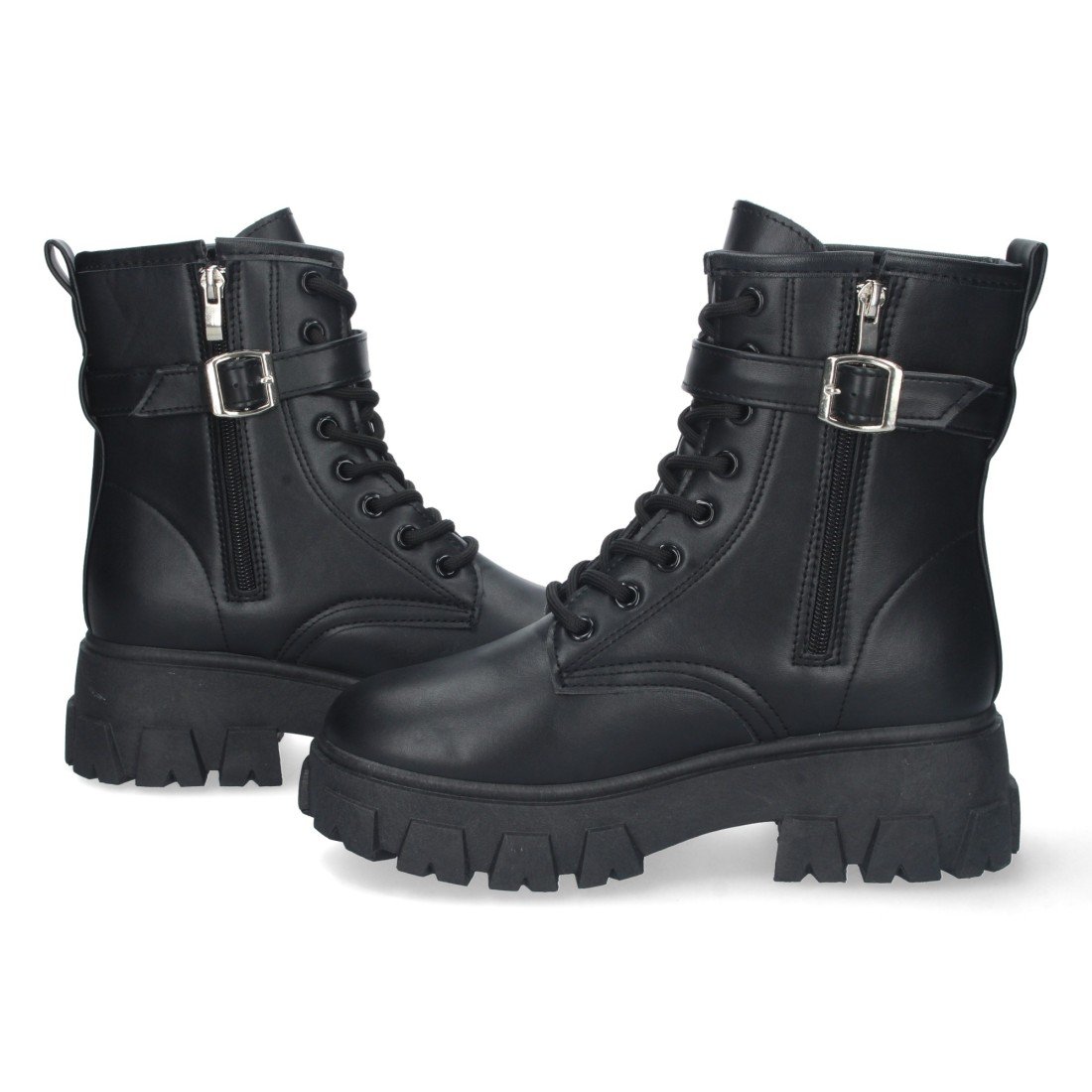 Botin de Plataforma para Mujer, Comodo, Correa con Bolsillo, Cierres de Cordones y Cremallera, Otoño Invierno 2022