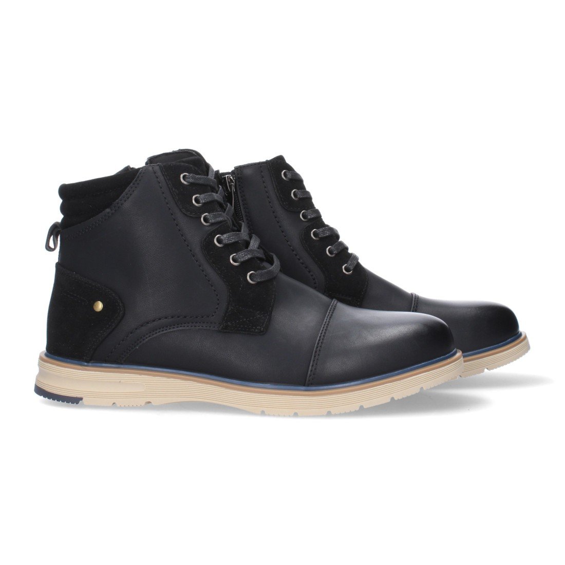 Botin Plano de Hombre, Comodo, con Acolchado en la Caña y adorno de tachuela cierre de cordoneras y de cremallera.
