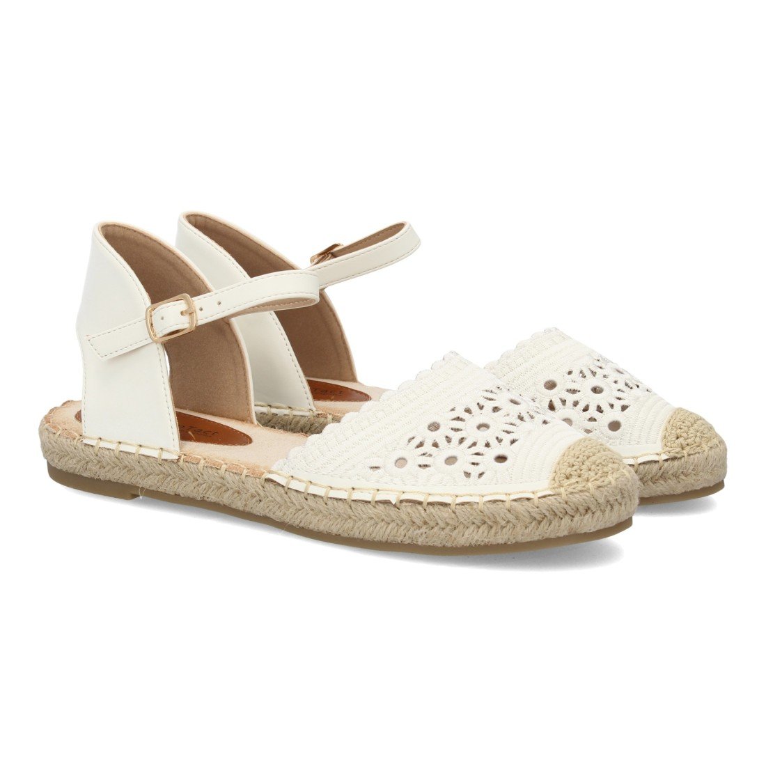Alpargata plana de mujer con diseño troquelado decorativo, estilo artesanal.