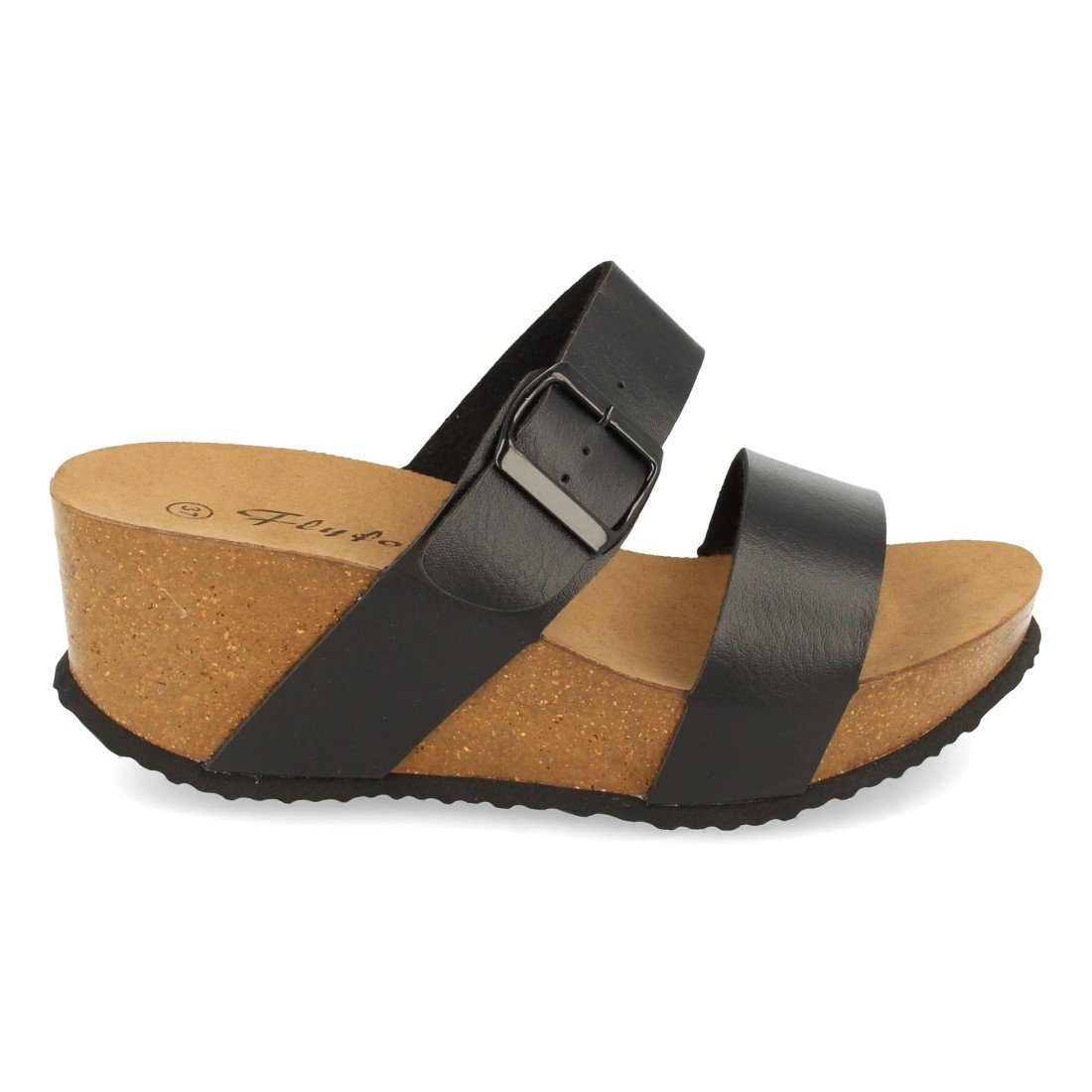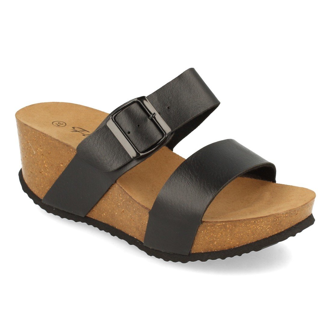 Sandalia de Cuña Bio con Pala Fina, Super Comodas, Talon Abierto y Decorada con Hebilla Primavera Verano 2021