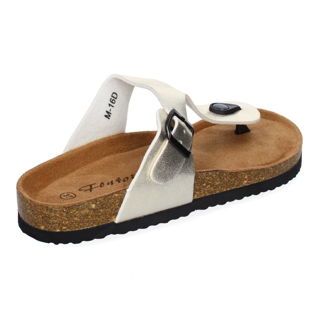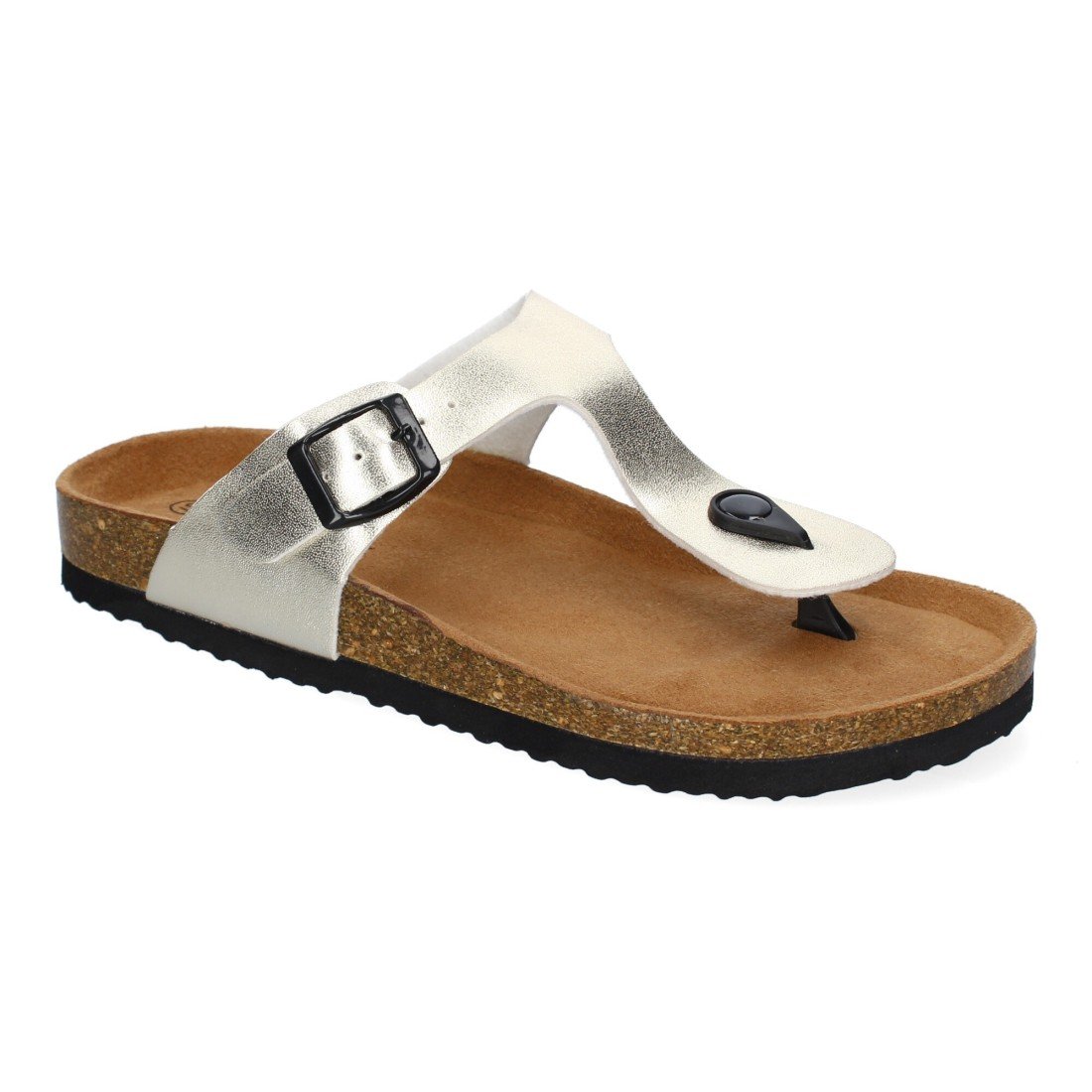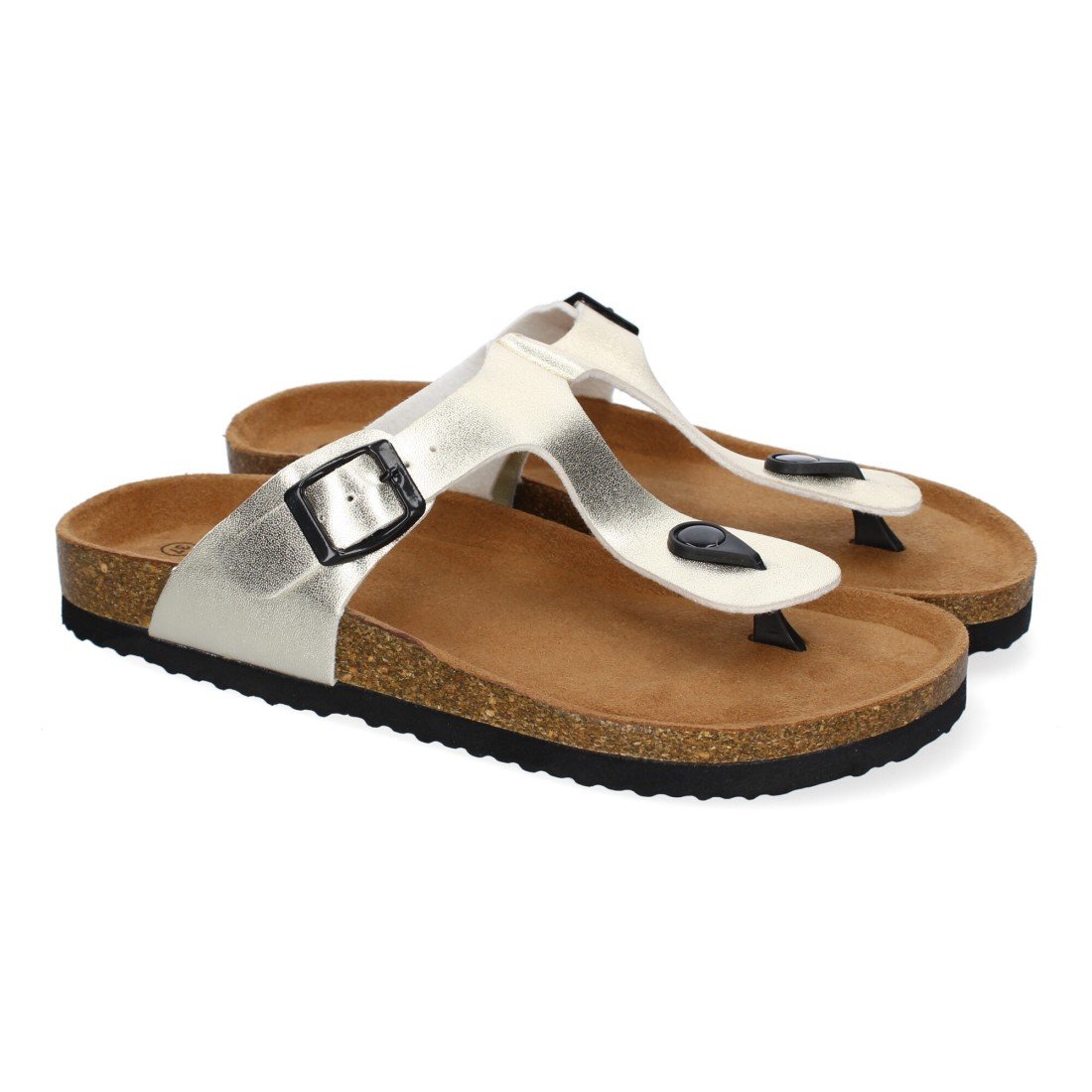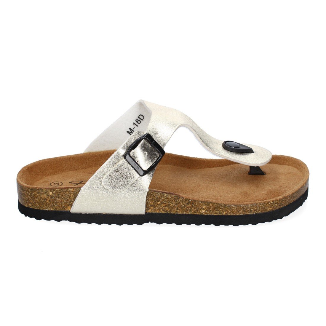 Sandalia tipo esclava, con piso de bio y planta anatómica y hebilla como detalle.