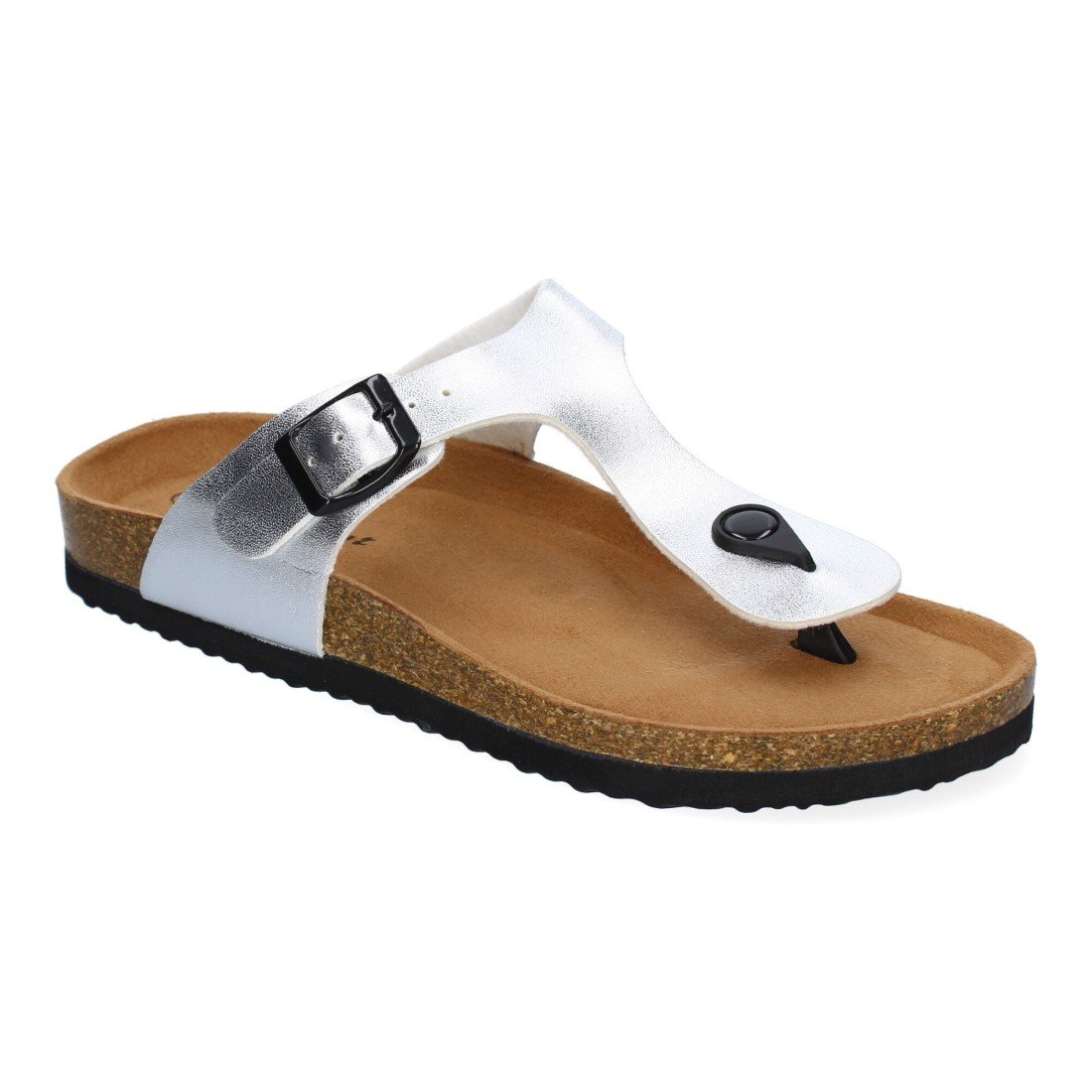 Sandalia tipo esclava, con piso de bio y planta anatómica y hebilla como detalle.