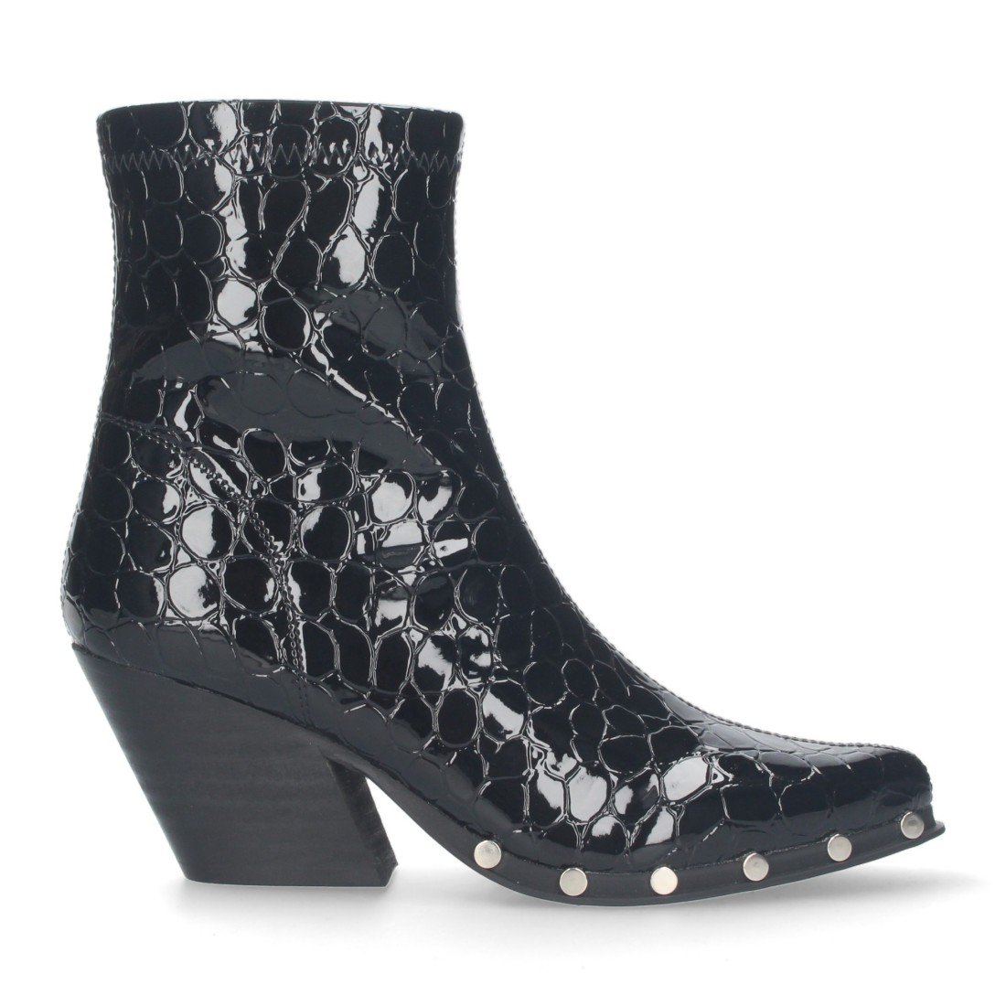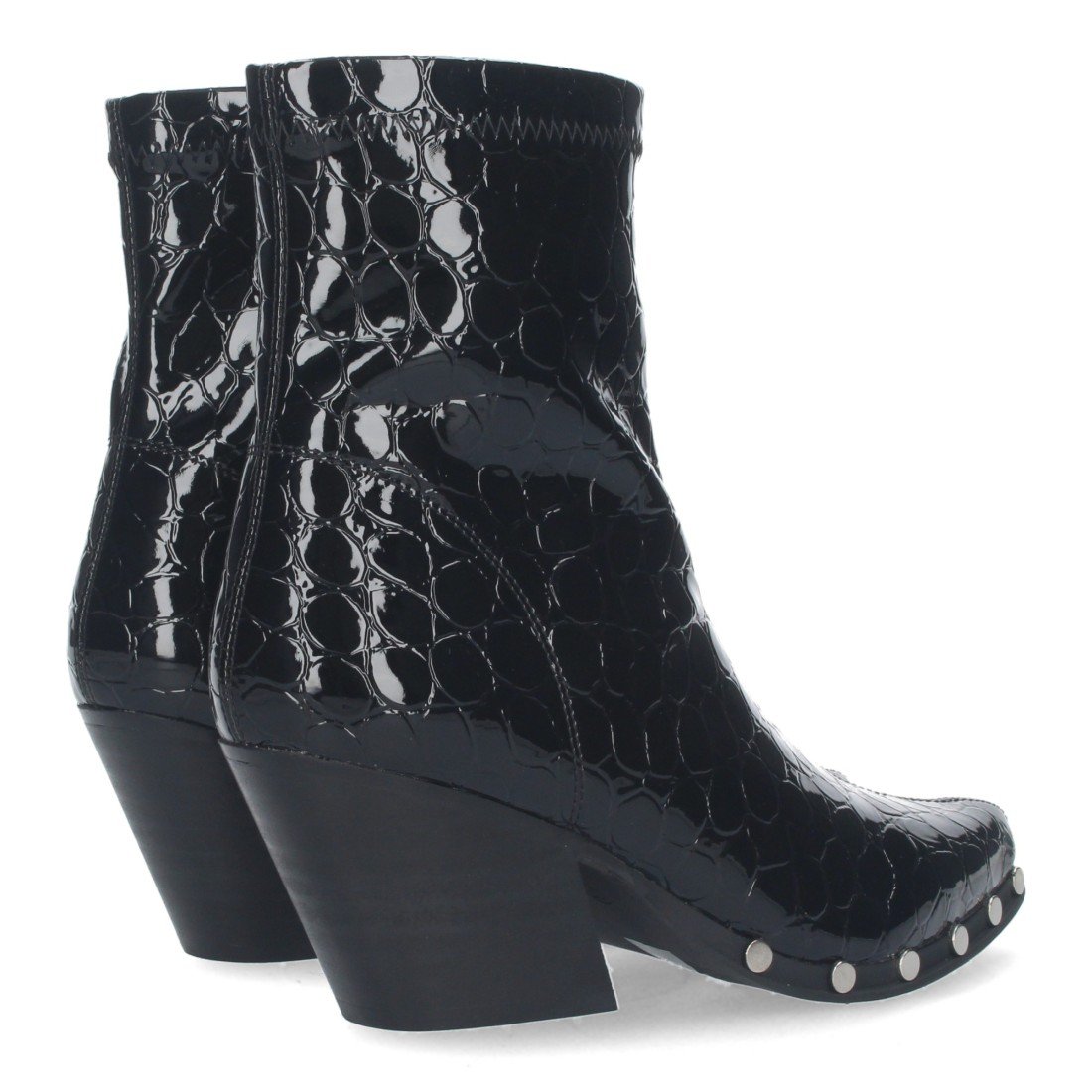 Botín cowboy punta redonda con imitación piel de cocodrilo remates en la suela y cierre de cremallera