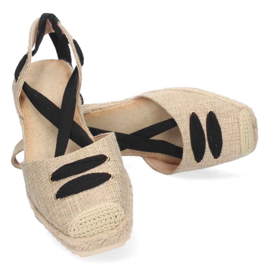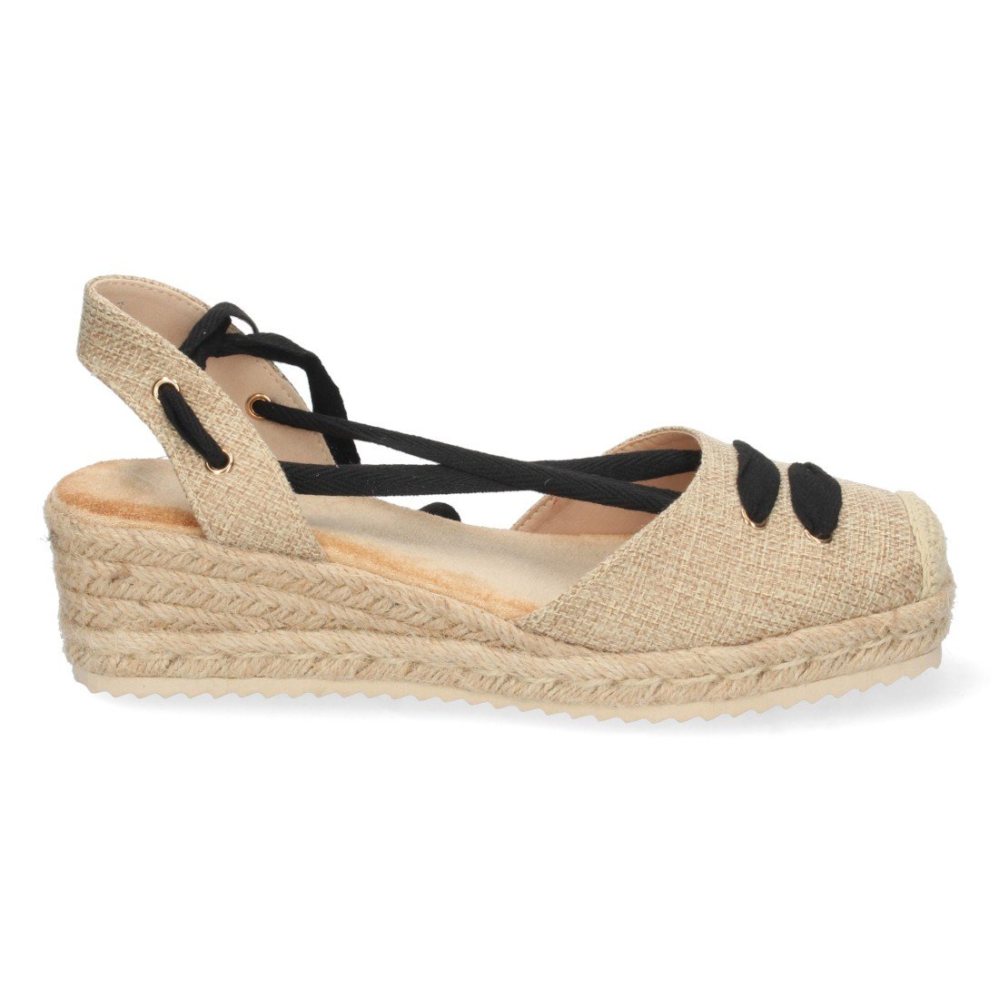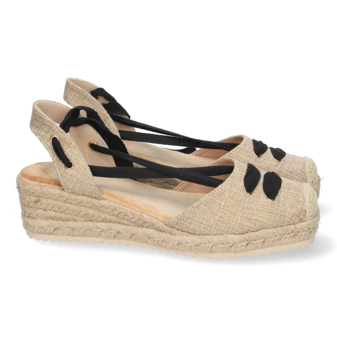 Sandalia de Cuña para Mujer, Forrada de Yute, con Pala Cerrada, y Cierre de Cordones, Primavera Verano 2022