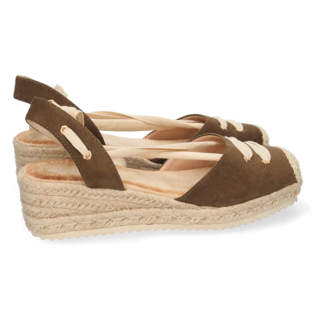 Sandalia de Cuña para Mujer, Forrada de Yute, con Pala Cerrada, y Cierre de Cordones, Primavera Verano 2022