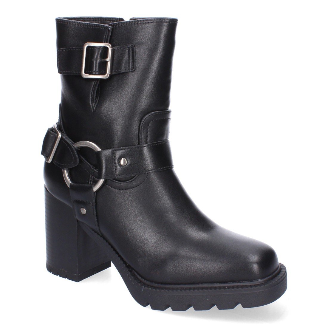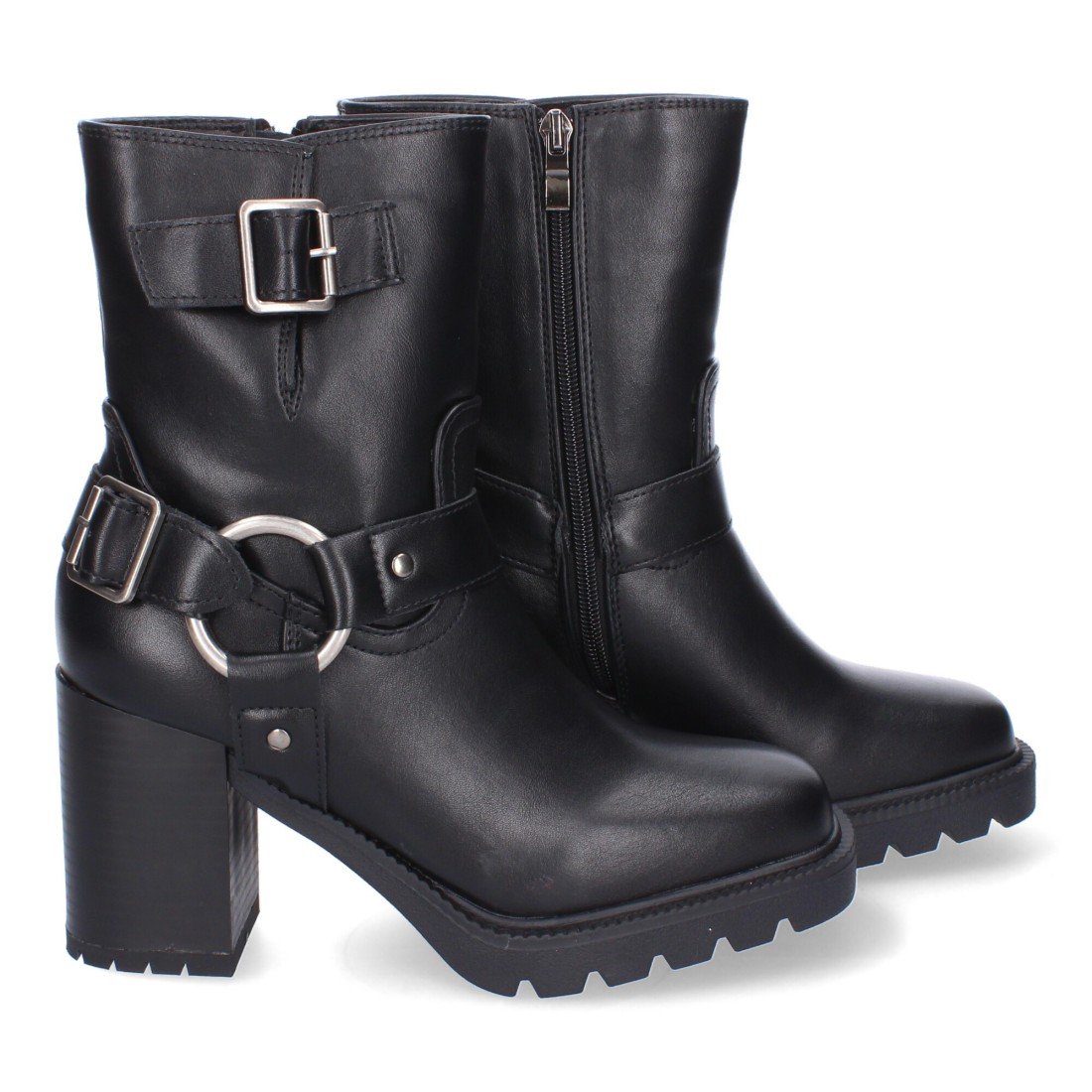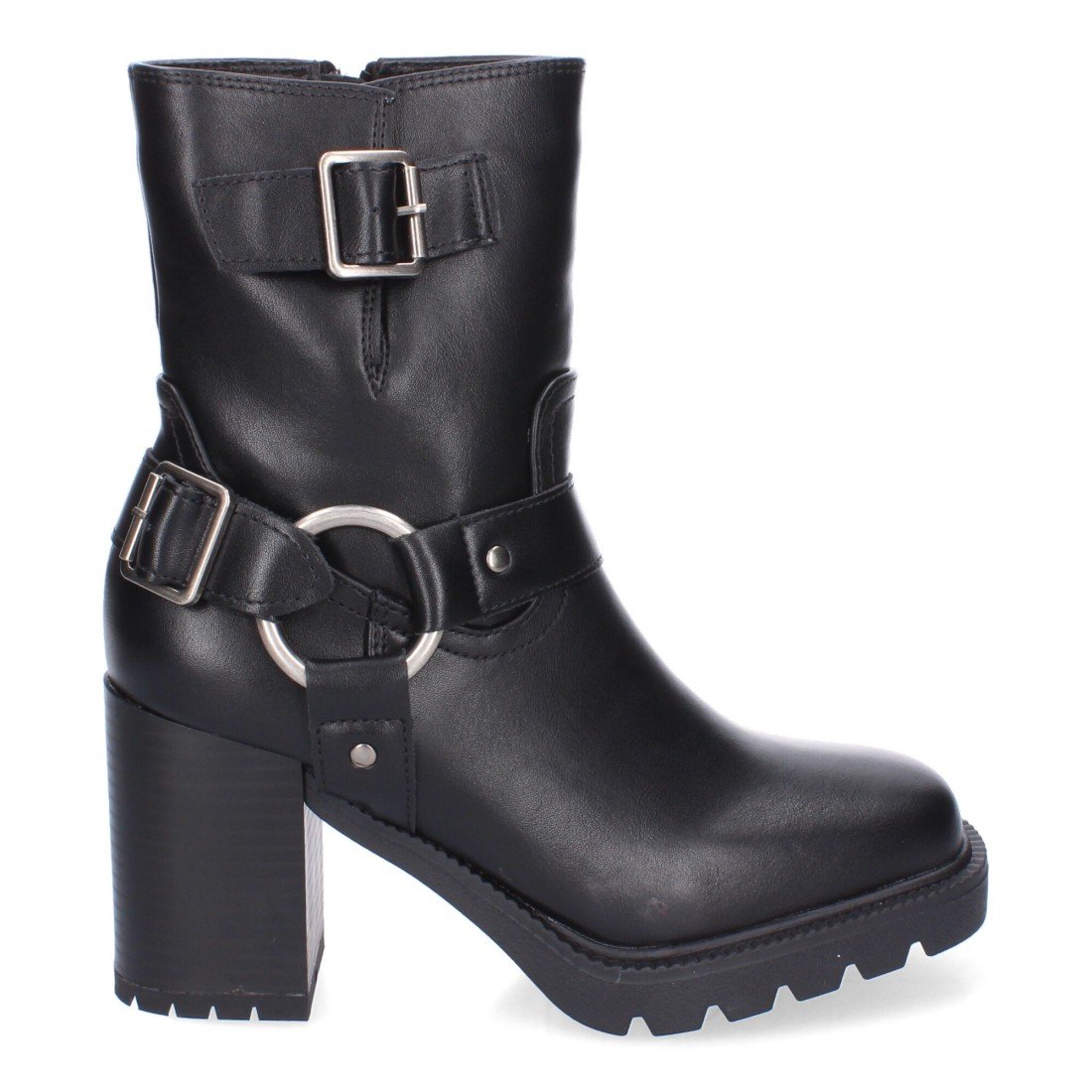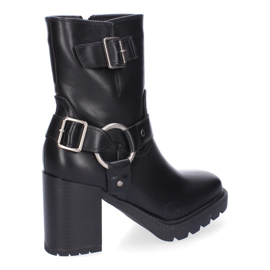 Botas de Tacón para Mujer, Comodas y Elegantes, Suela Dentada, Punta Redonda, Adornos de Hebillas y Cierre de Cremallera.