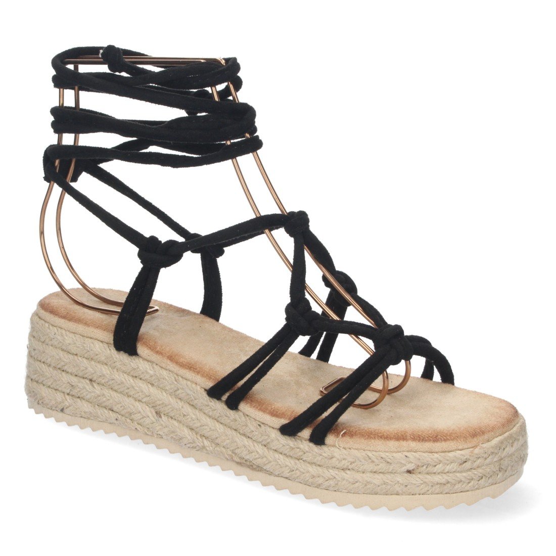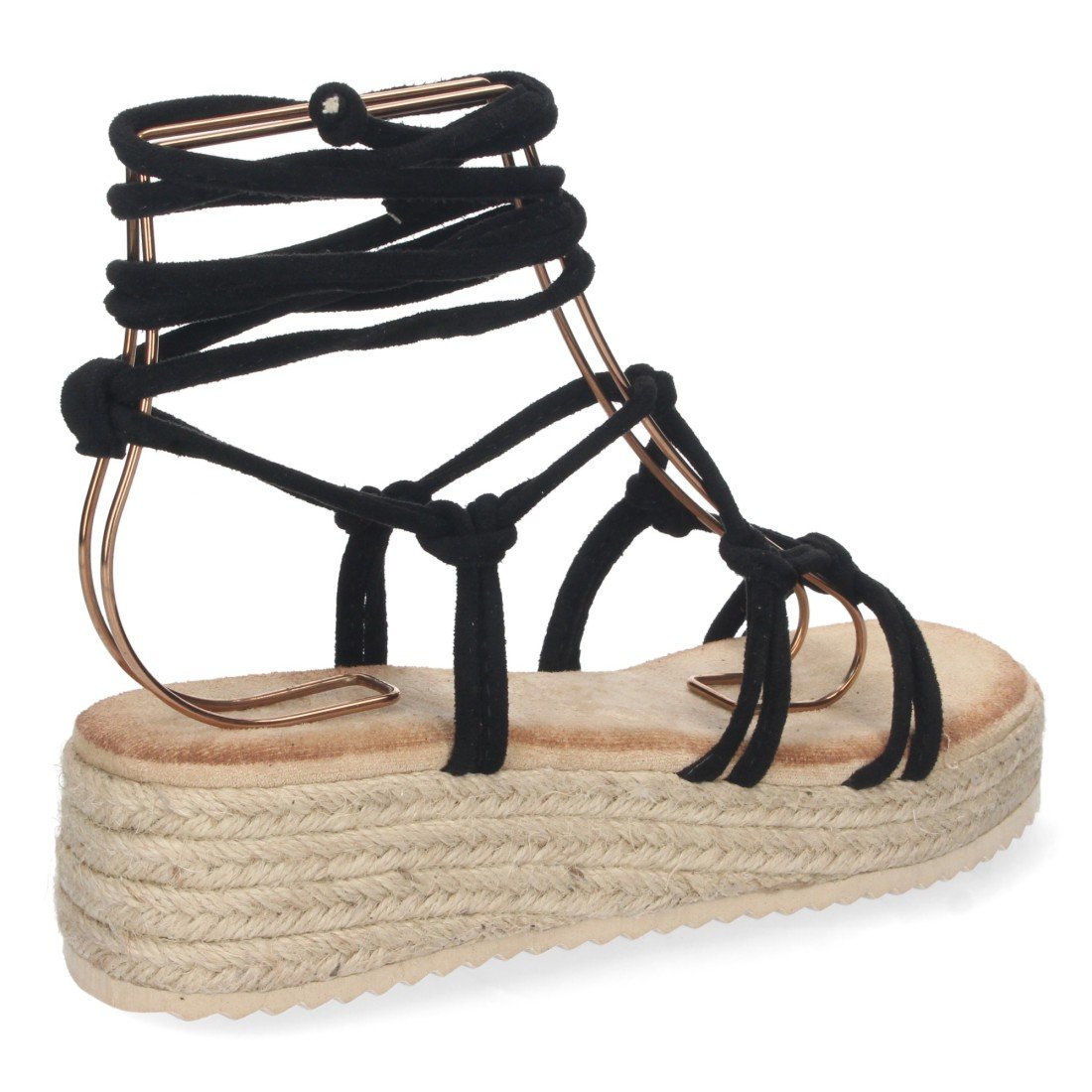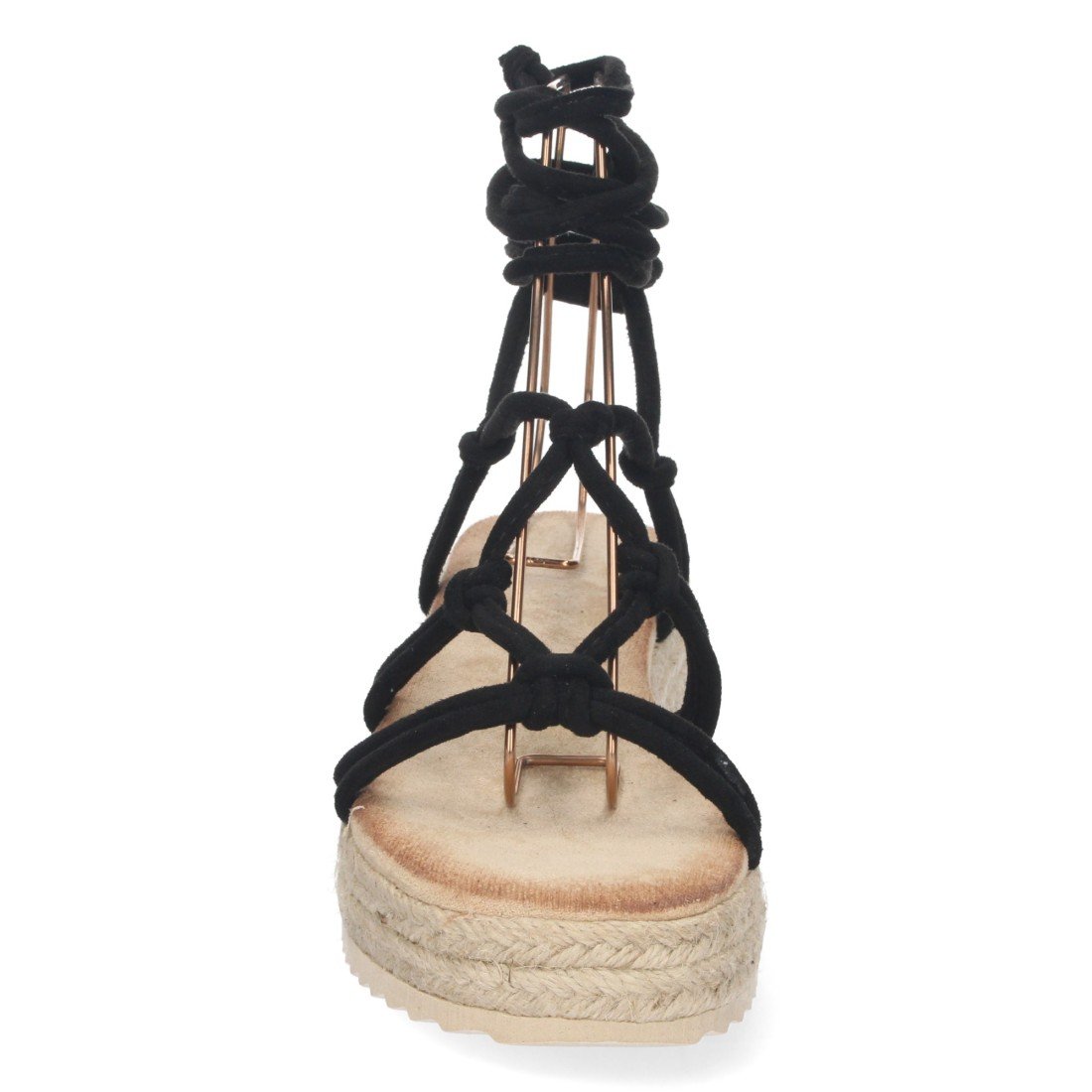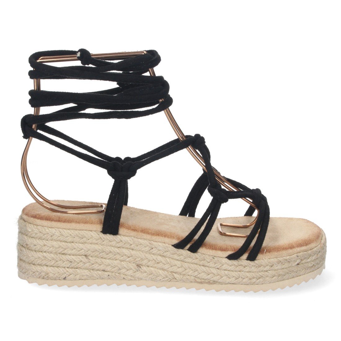 Sandalia de Plataforma para Mujer, Forrada de Yute, con Cierre de Cordones al Tobillo, Primavera Verano 2022