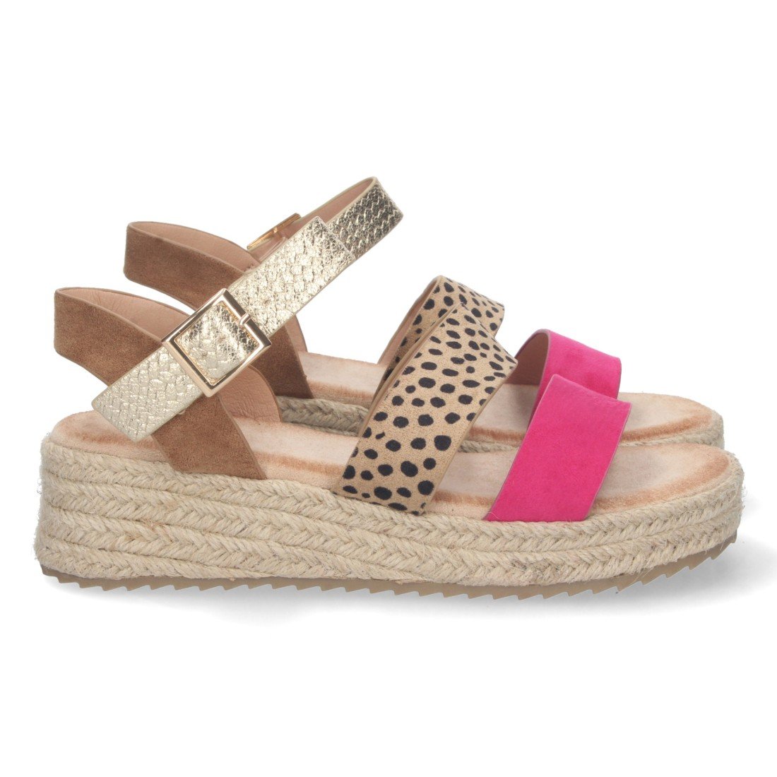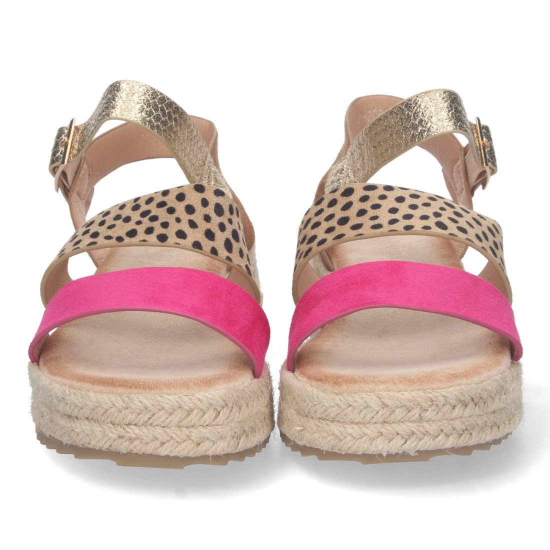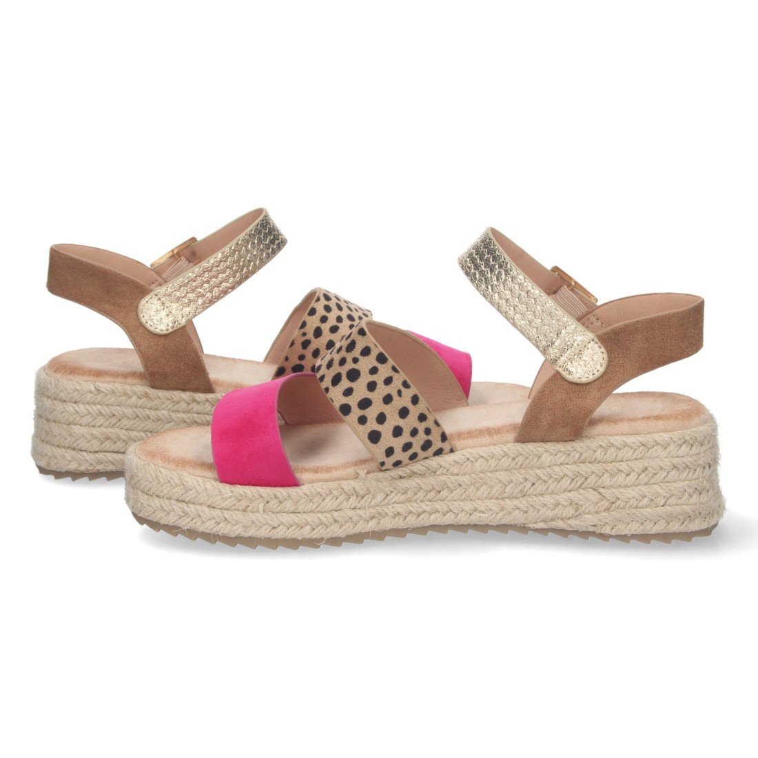 Sandalia de Plataforma para Mujer, Forrada de Yute, con Estampado Multicolor, y Cierre de Hebilla, Primavera Verano 2022