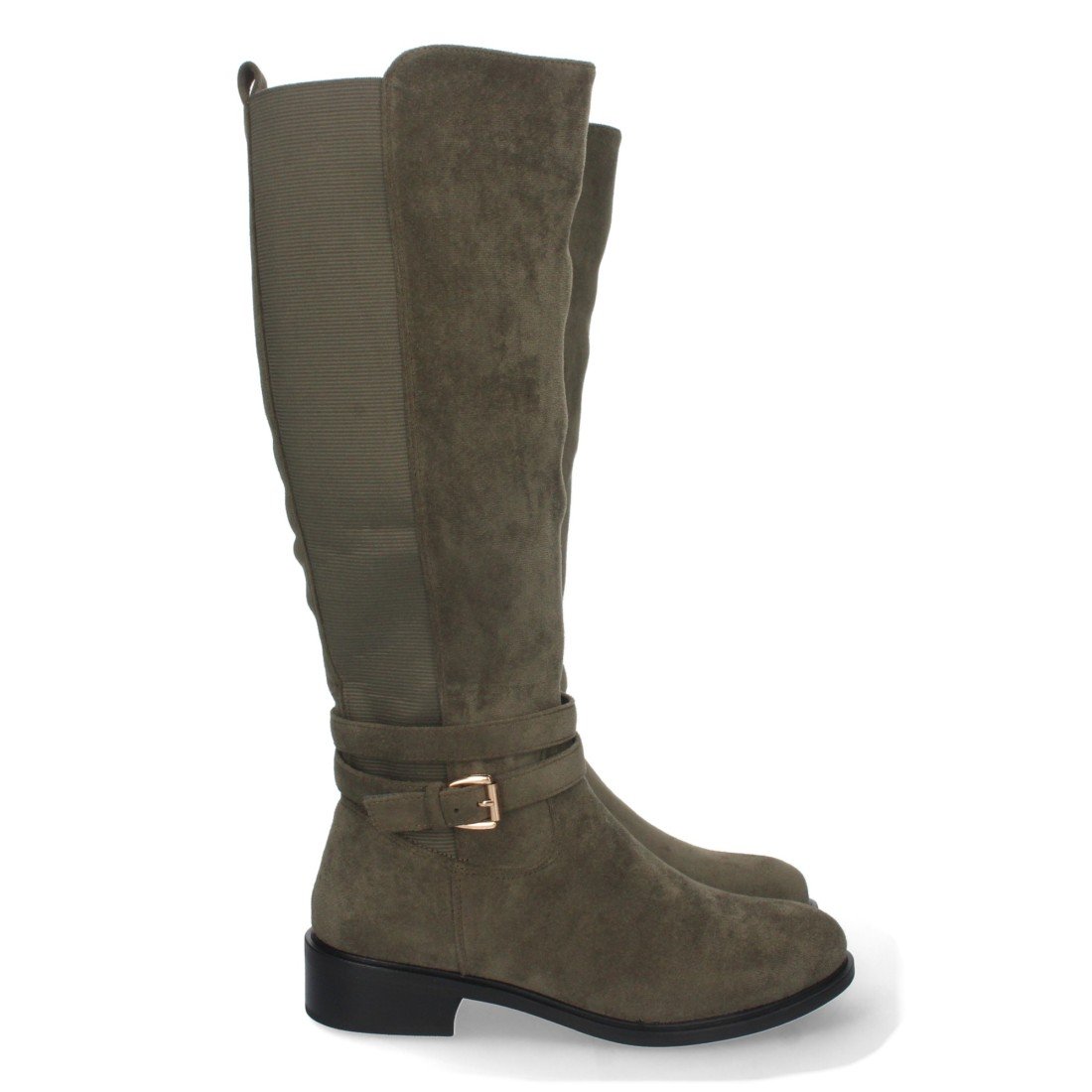 Bota de Tacon Bajo para Mujer, Comoda, Elástico en el Gemelo, Correa con Hebilla, y Cierre de Cremallera, Otoño Invierno 2022