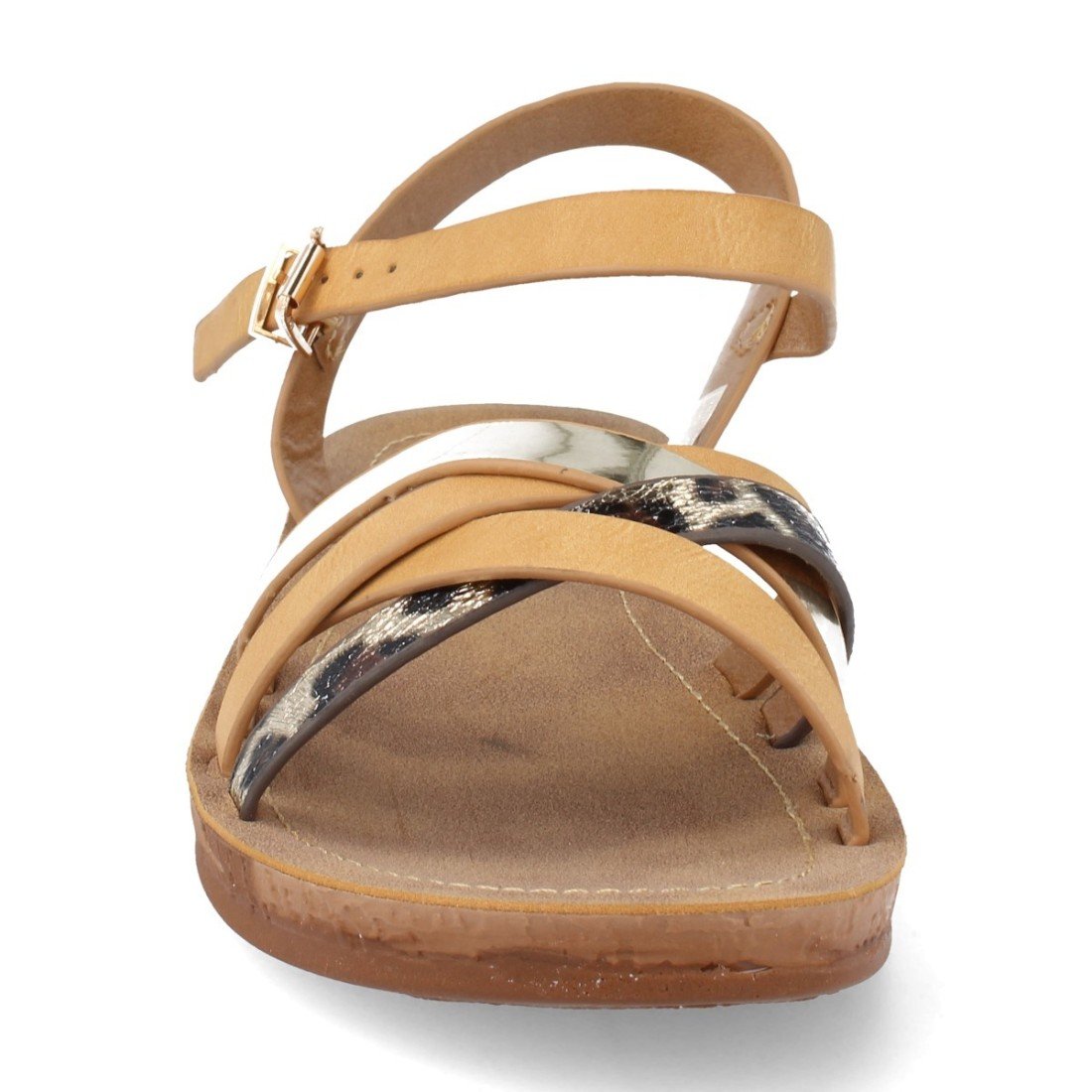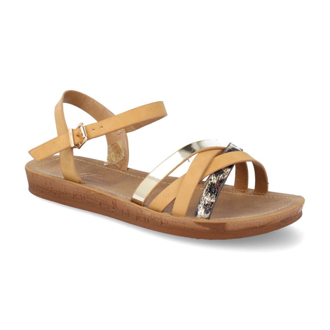 Sandalia de Mujer con Tiras Cruzadas en Leopardo Metalizadas Estilo Casual Verano 2019