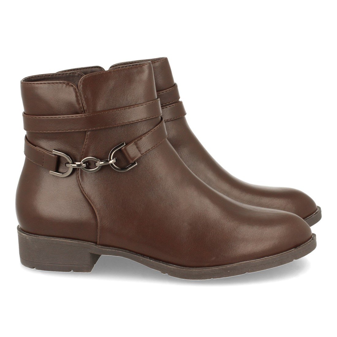 Botin de Tacon Bajo para Mujer, Comodos, Detalle de Tira con Enganche Metalico, y Cierre de Cremallera, Otoño Invierno 2021