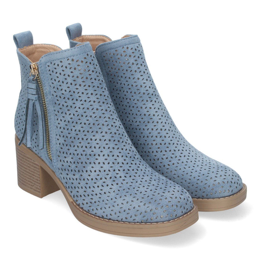 Botines de Mujer Primavera Verano Elegantes y Comodos con Tacón Ancho, Diseño Perforado con Doble Cremallera Lateral con Fleco, Ideal para Cualquier Ocasión.