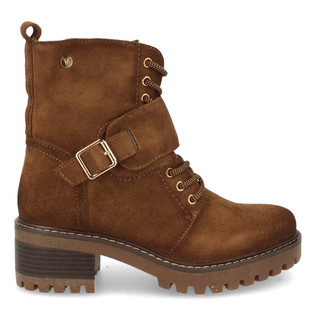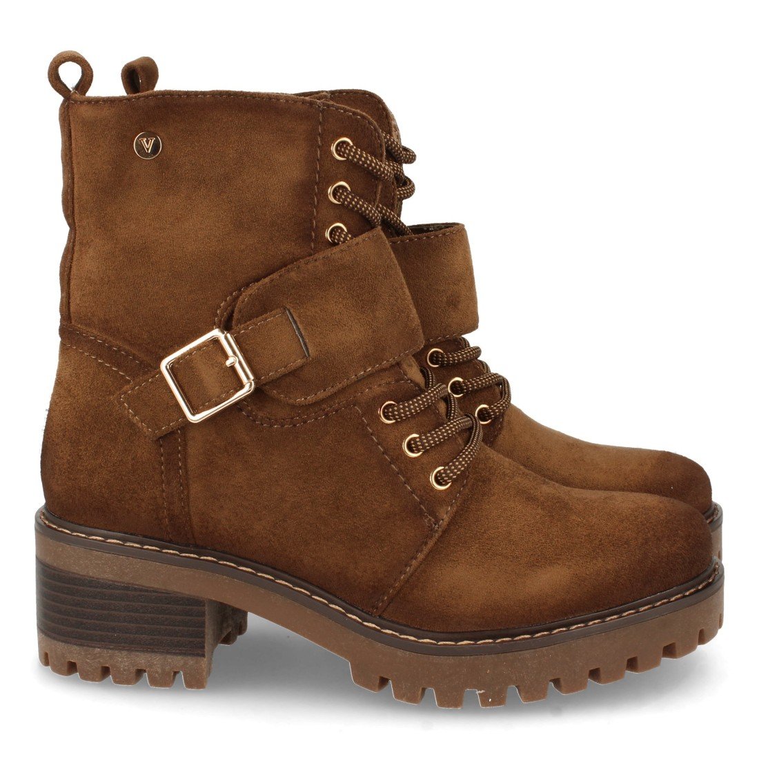 Botin de Tacón para Mujer, Tira con Hebilla, Estampado Liso, y Cierre de Cordones, Otoño Invierno 2021