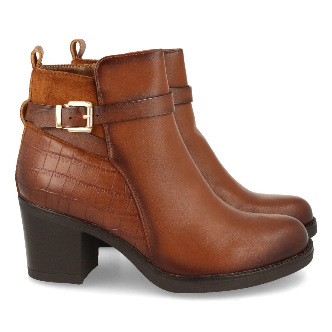Botin de Tacon para Mujer, Comodos, Estampado de Cocodrilo, Hebilla, y Cierre de Cremallera, Otoño Invierno 2021