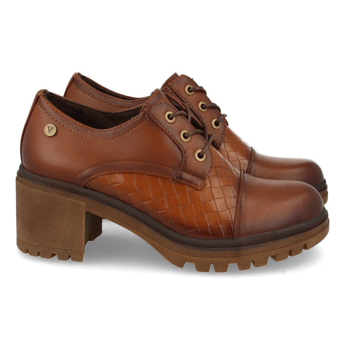 Zapato de Tacón para Mujer, Comodos, con Tachuela de Marca, y Cierre de Cordones, Otoño Invierno 2021