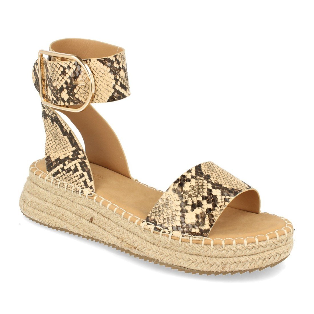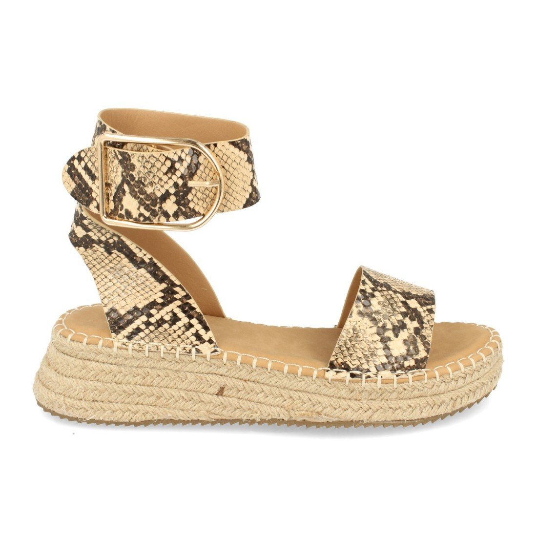 Sandalia Plana para Mujer, con Yute, Pala Fina, Talon Abierto y Cierre de Hebilla en el Tobillo Primavera Verano 2022
