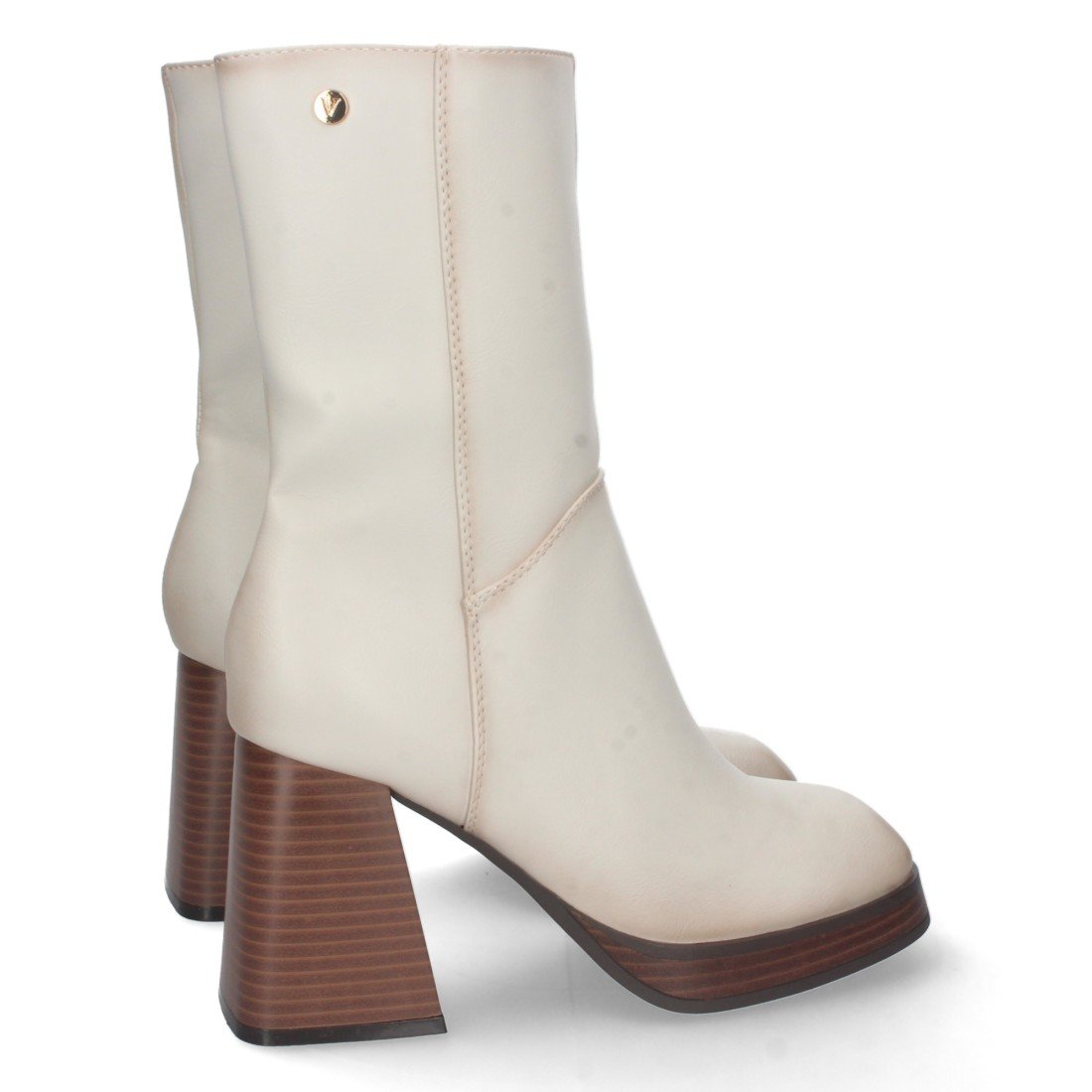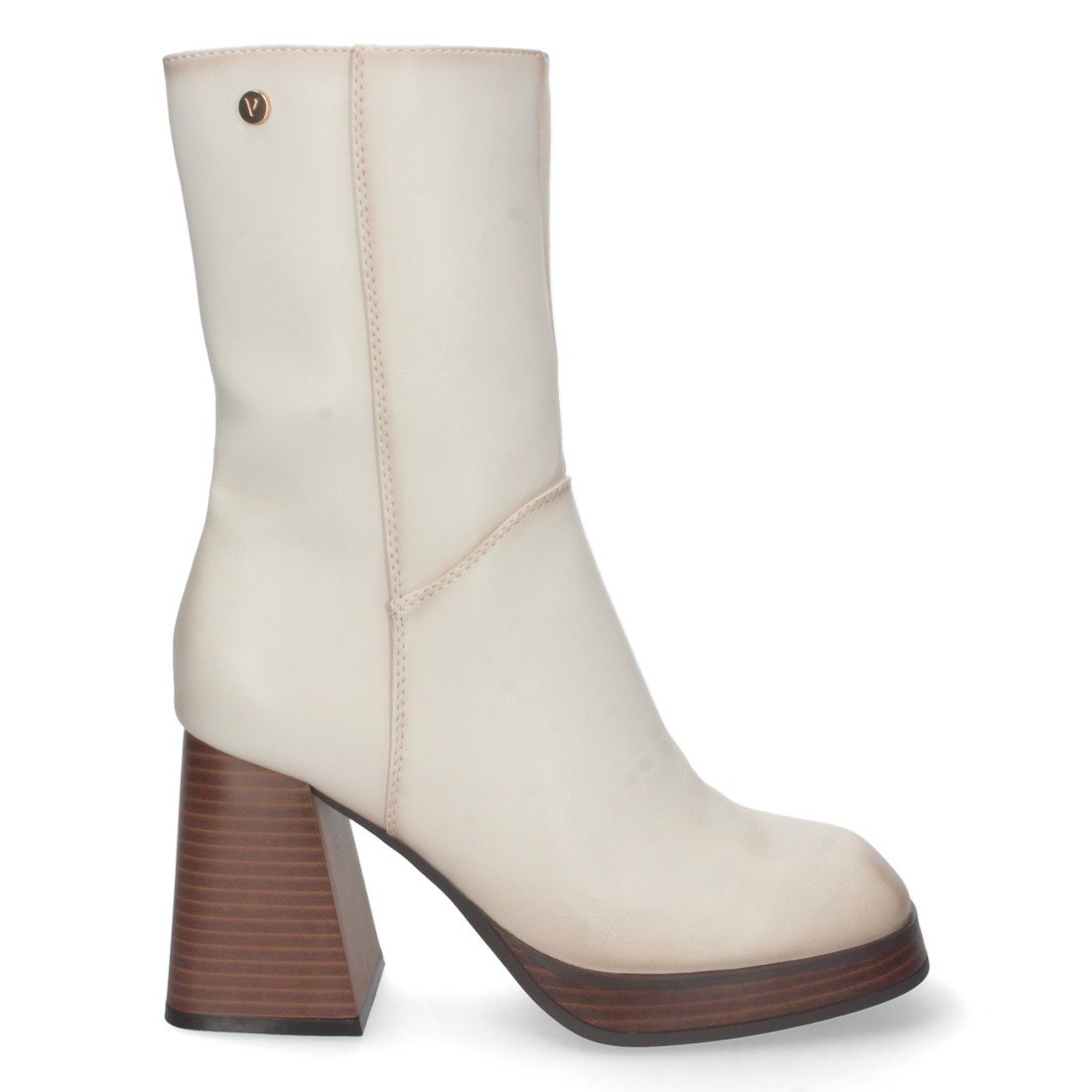 Botin de Tacon Ancho para Mujer, con Estampado Liso, Tachuela en Caña, y Cierre de Cremallera, Otoño Invierno 2022