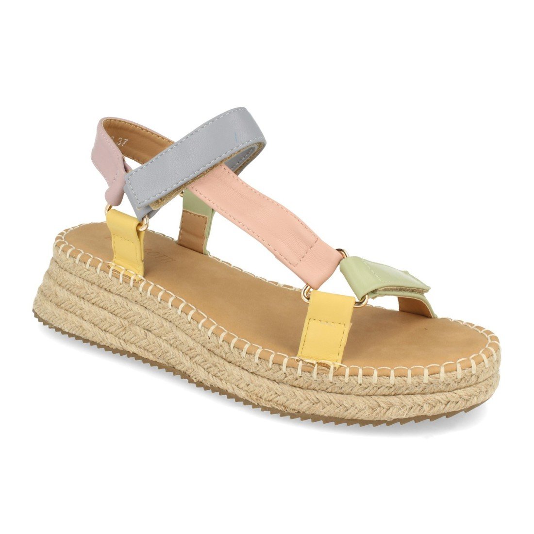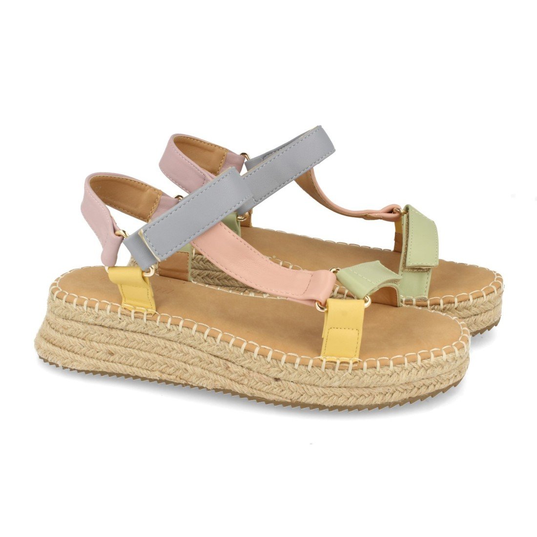 Sandalia de Mujer, con Piso de Cuña con Yute, y Cierre de Velcro, Primavera Verano 2020