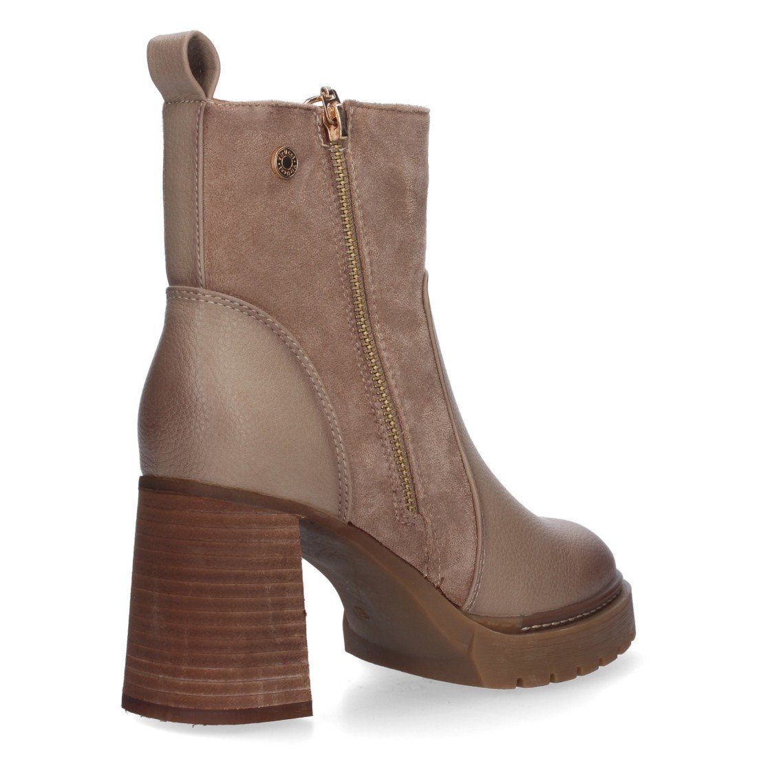Botín con tacon comodo de mujer, estampado liso, cierre de cremallera.