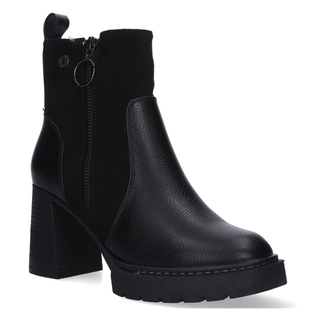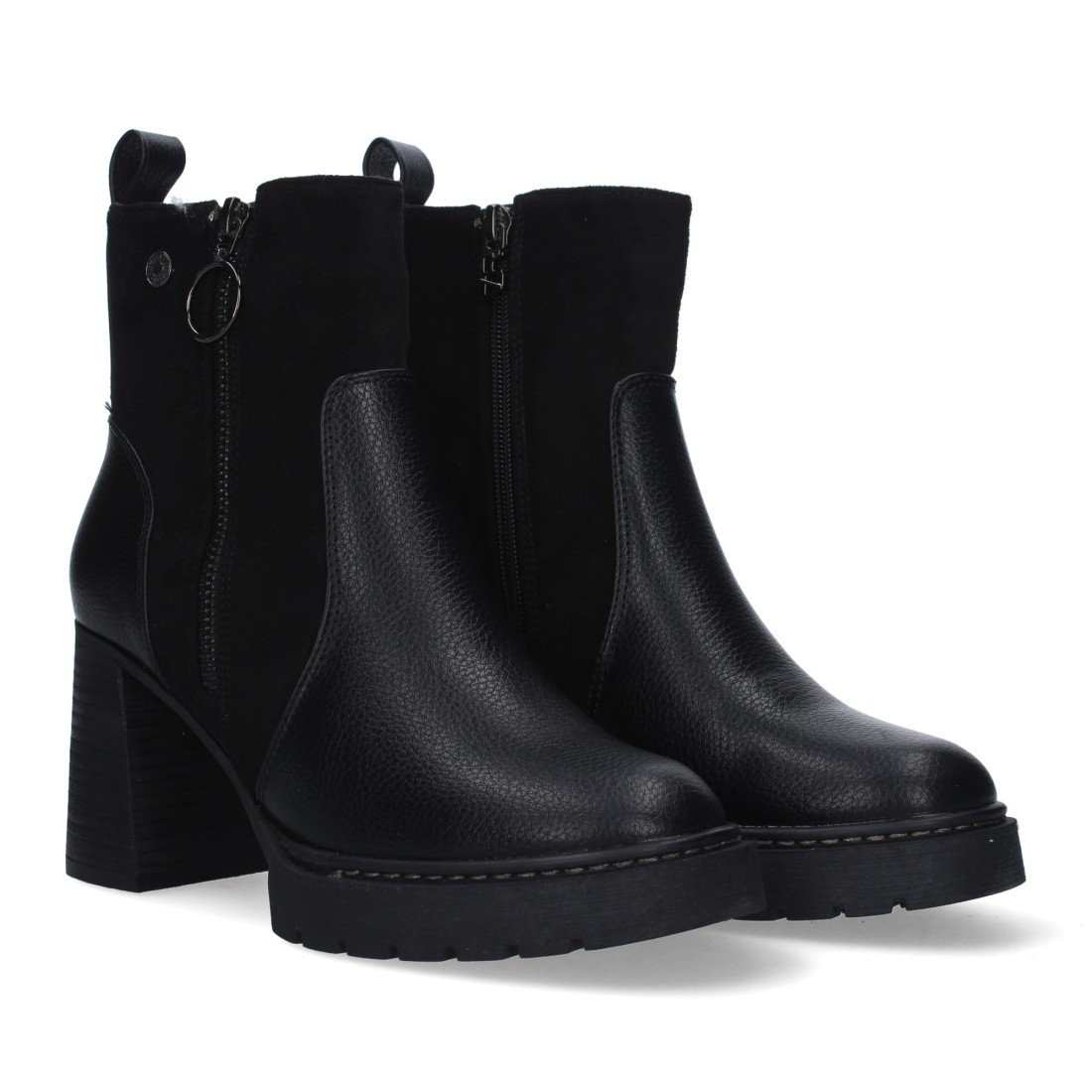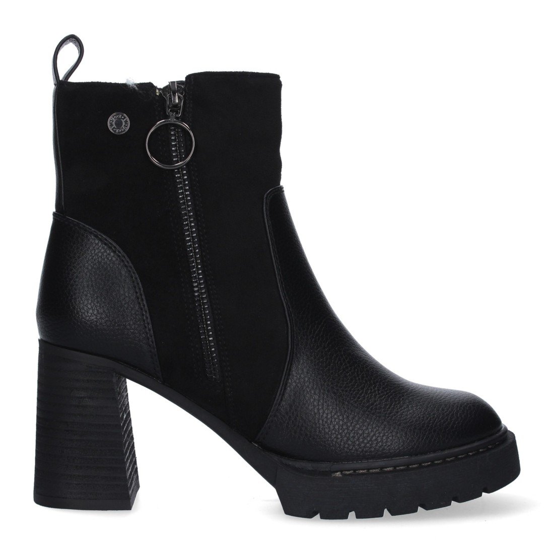 Botín con tacon comodo de mujer, estampado liso, cierre de cremallera.