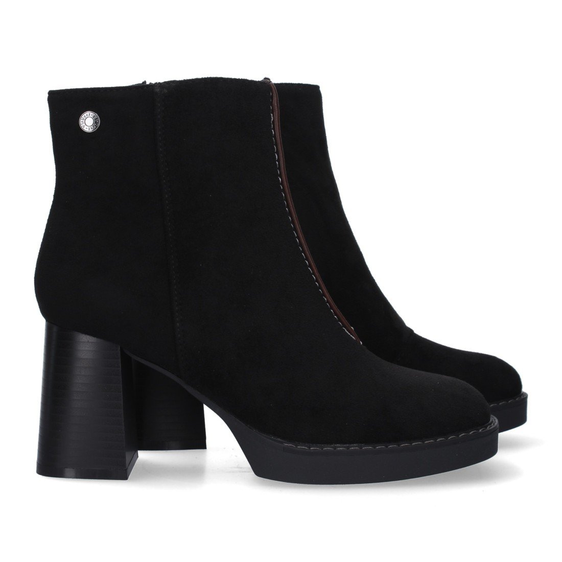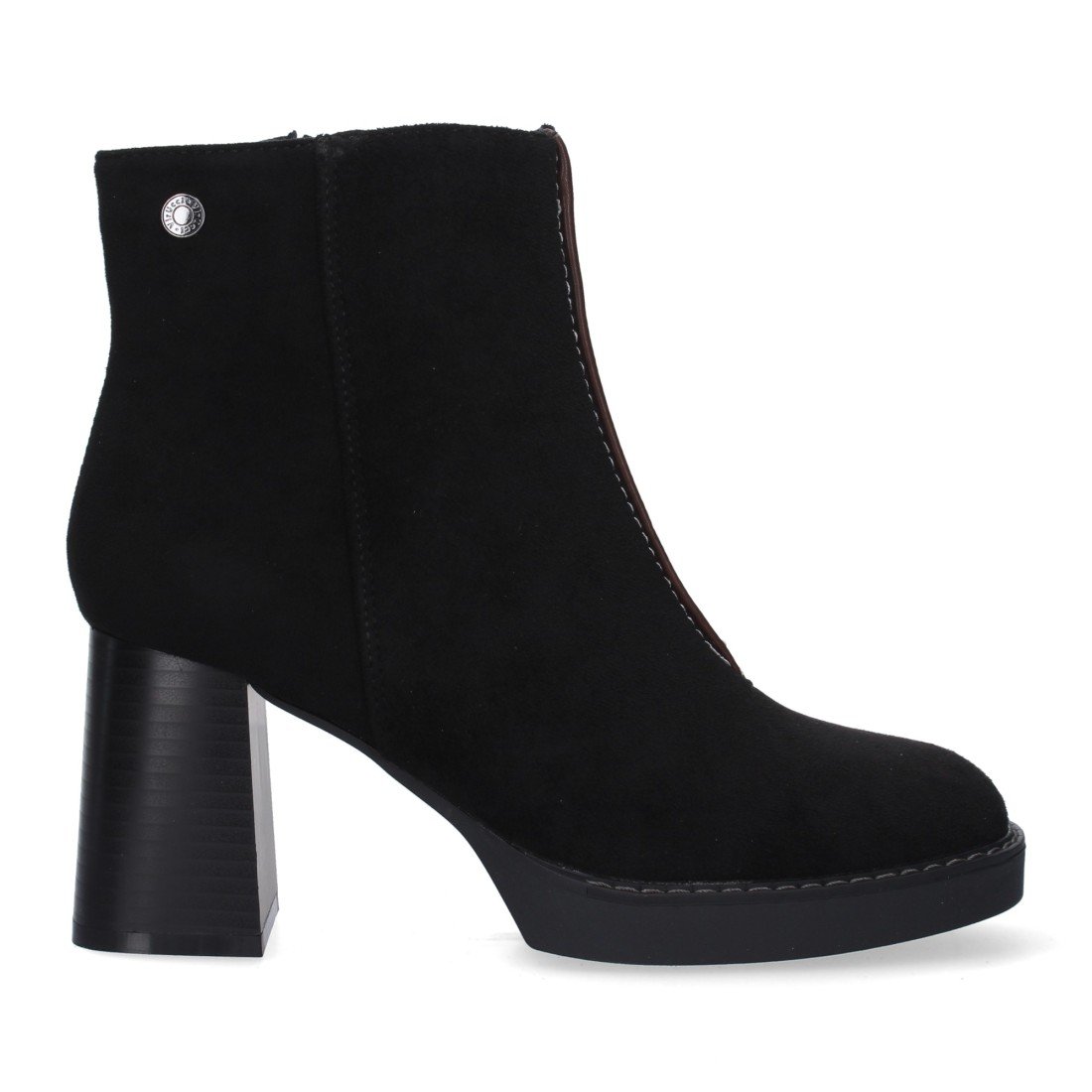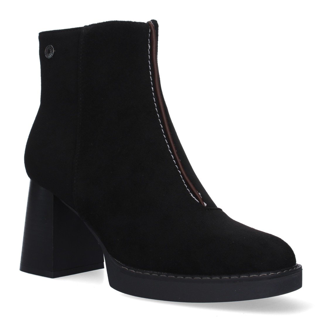 Botin de Tacon Ancho para Mujer, adorno de tachuela en la caña,punta redonda, y Cierre de Cremallera, Otoño Invierno 2022