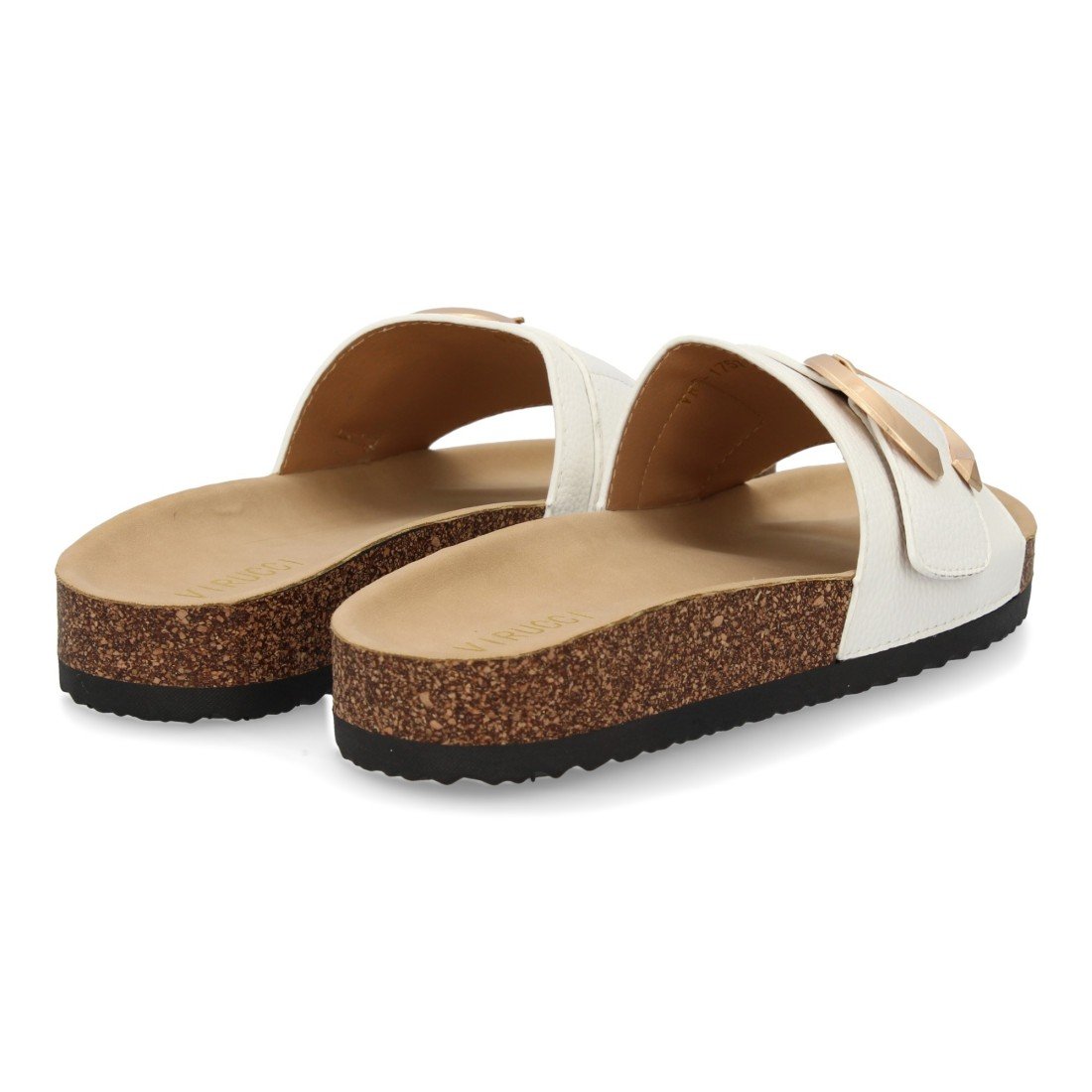 Sandalia plana de mujer, comoda y elegante, diseño moderno con material bio, detalle metalico en la pala, ideales para primavera verano.