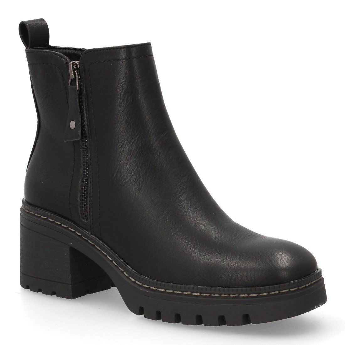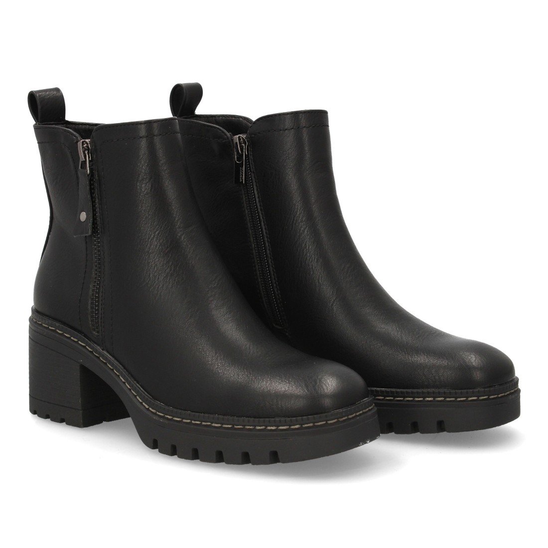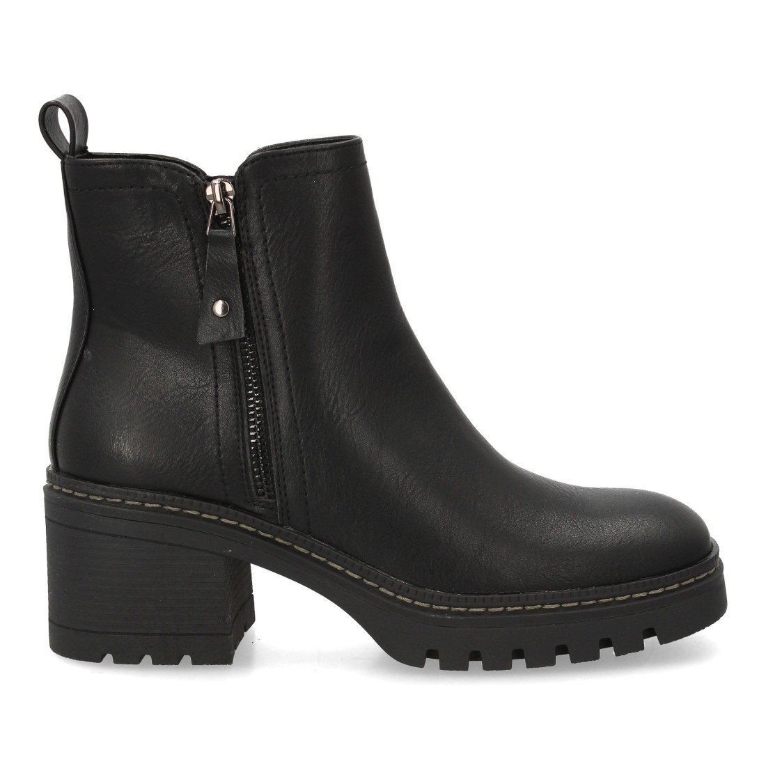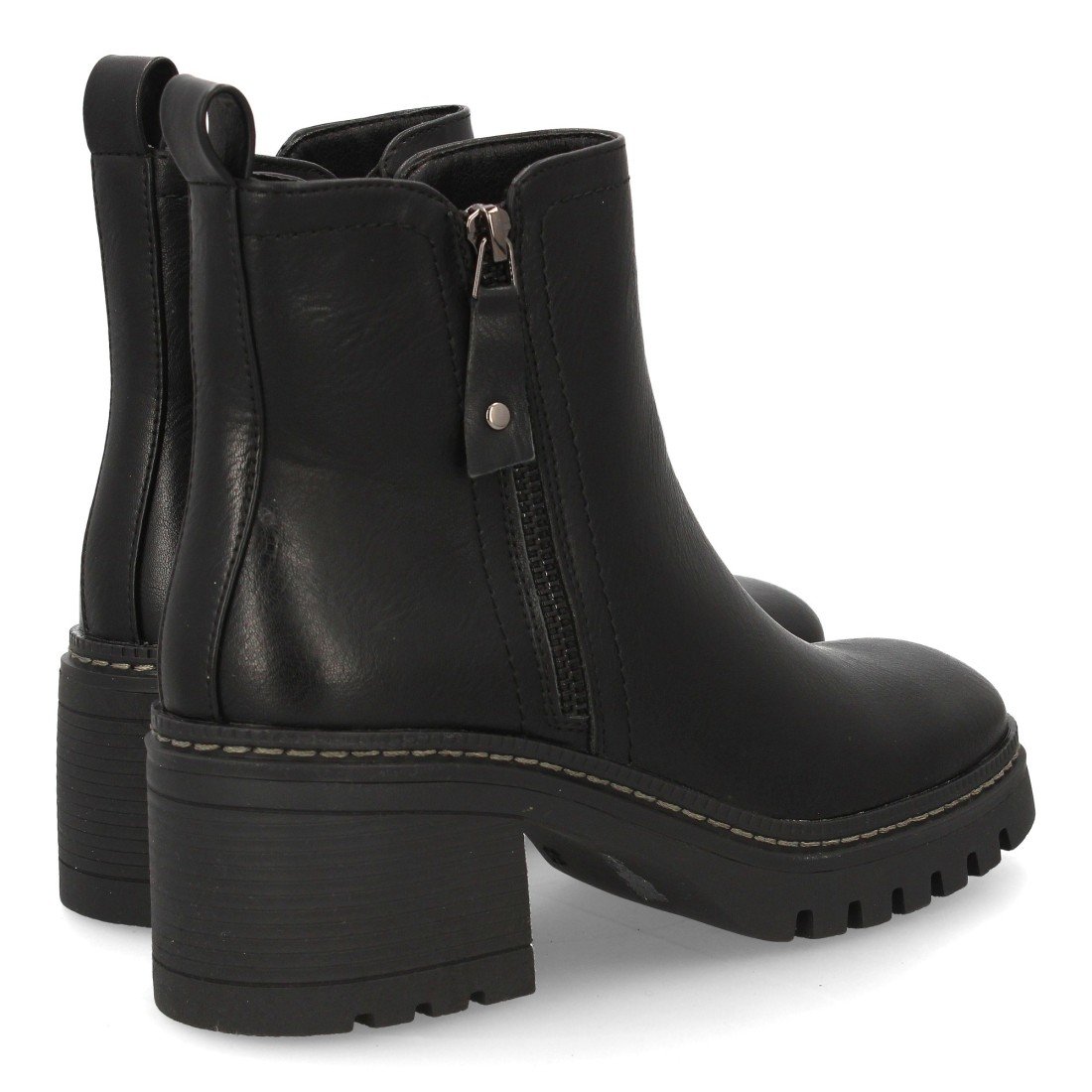 Botín de tacón con estampado liso para mujer. Para uso diario, Cierre de Cremallera interior ideal para la temporada de otoño invierno. Diseño minimalista con cremallera decorativa exterior.