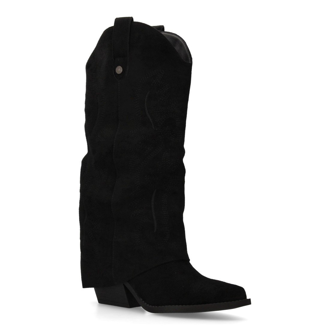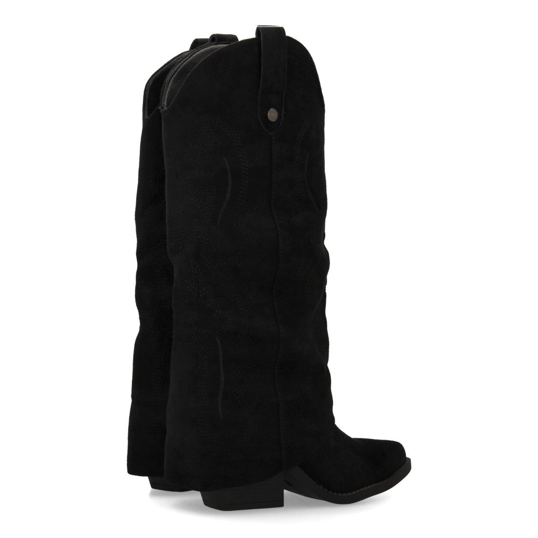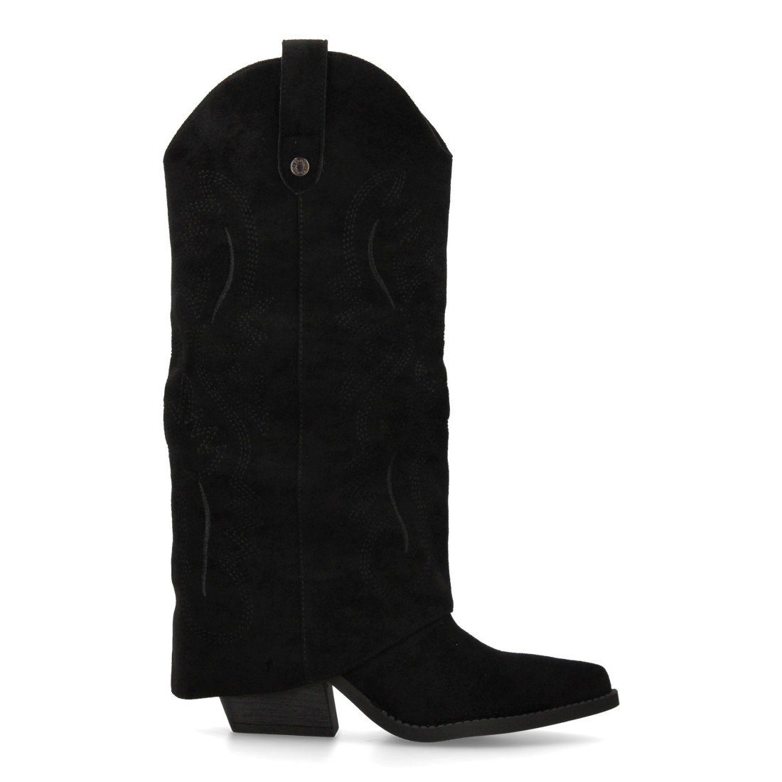 Bota para mujer estilo cowboy, acabada en punta y con grabados bordados en la caña. Tacon cubano y cierre de cremallera.