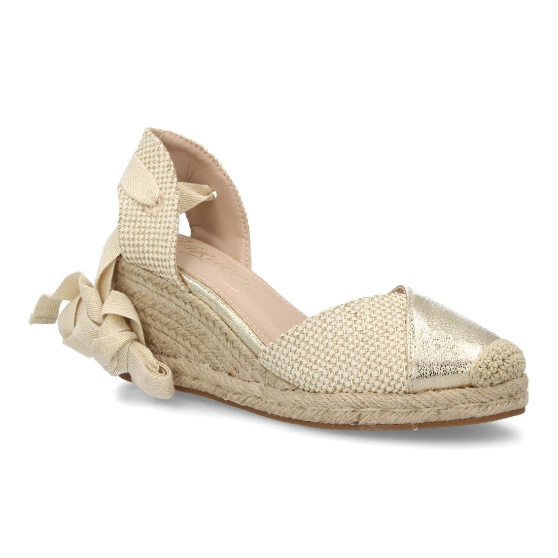 Alpargata de cuña baja de esparto con cintas