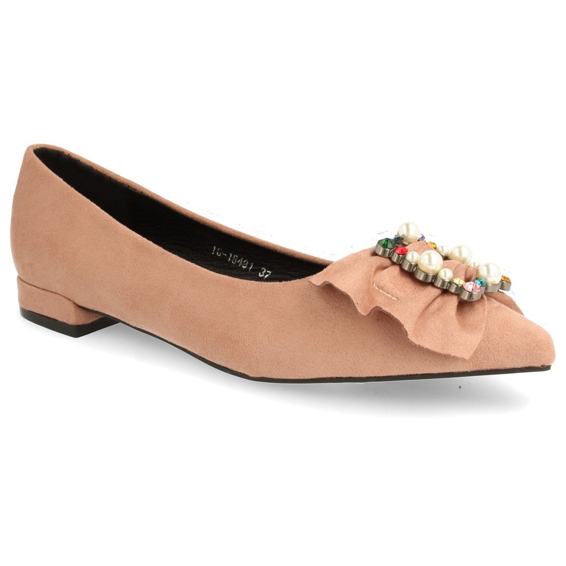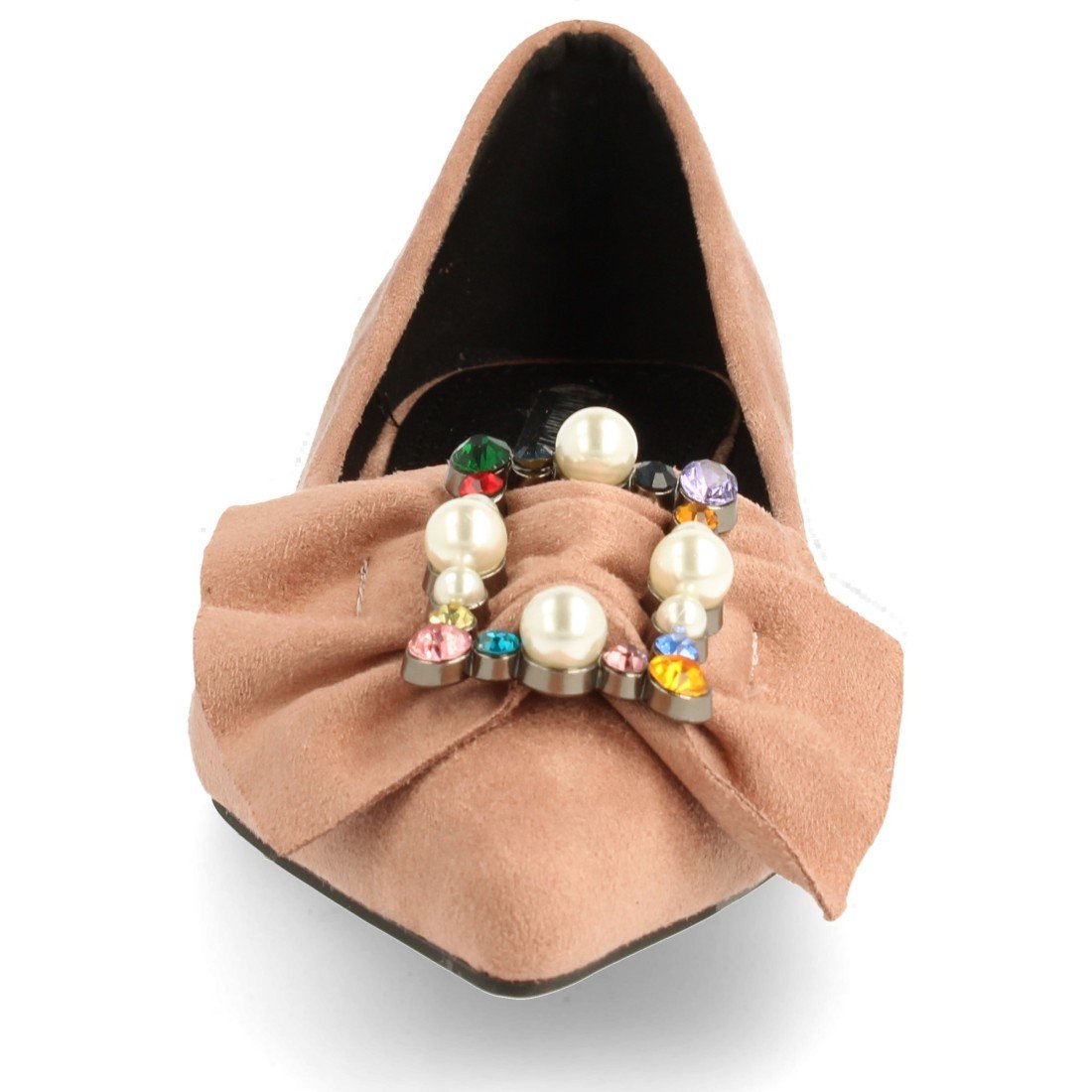 Zapato de tacón cuadrado y punta fina, con detalle de hebilla con adornos de pedrería. Altura del tacón: 1,5 cm.