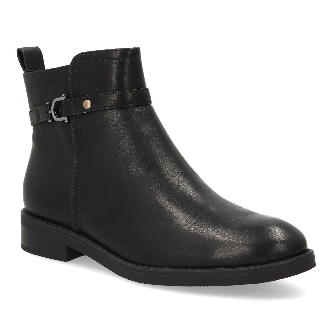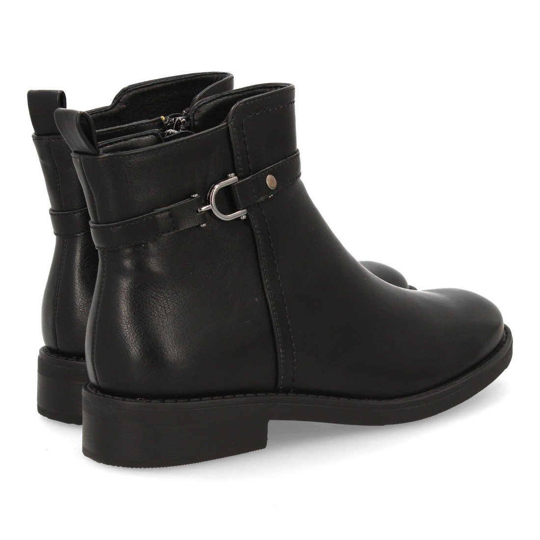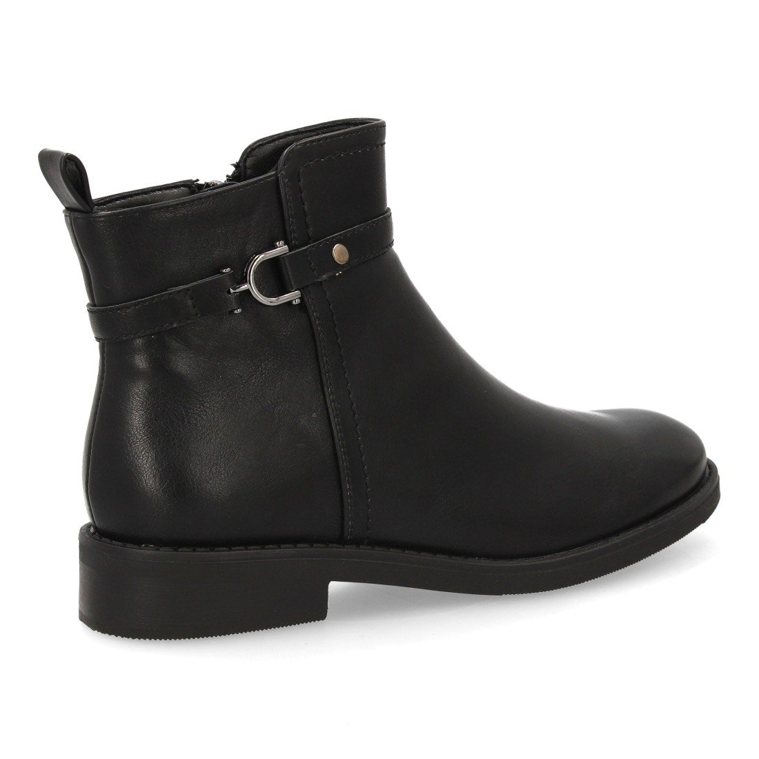 Botín plano para mujer, ideal para la temporada Otoño Invierno diseño cómodo y funcional para el día a día. Diseño con tira decorativa con hebilla metálica. Cremallera lateral y suela cómoda y flexible.