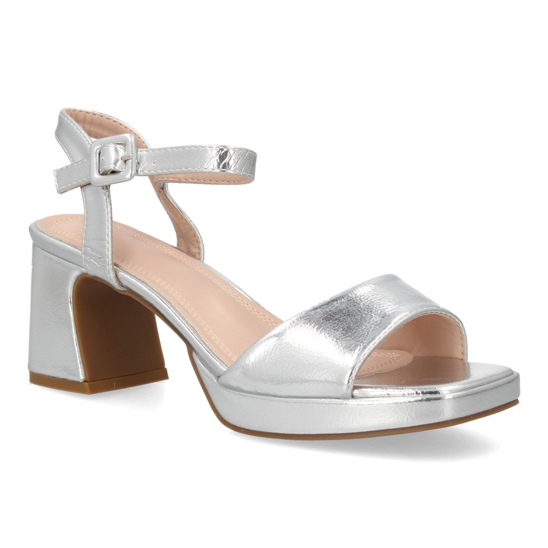 Sandalia de tacón ancho con plataforma para mujer, tacón y altura cómodos, estructura de tira frontal y cierre con pulsera ajustable de hebilla en el tobillo.