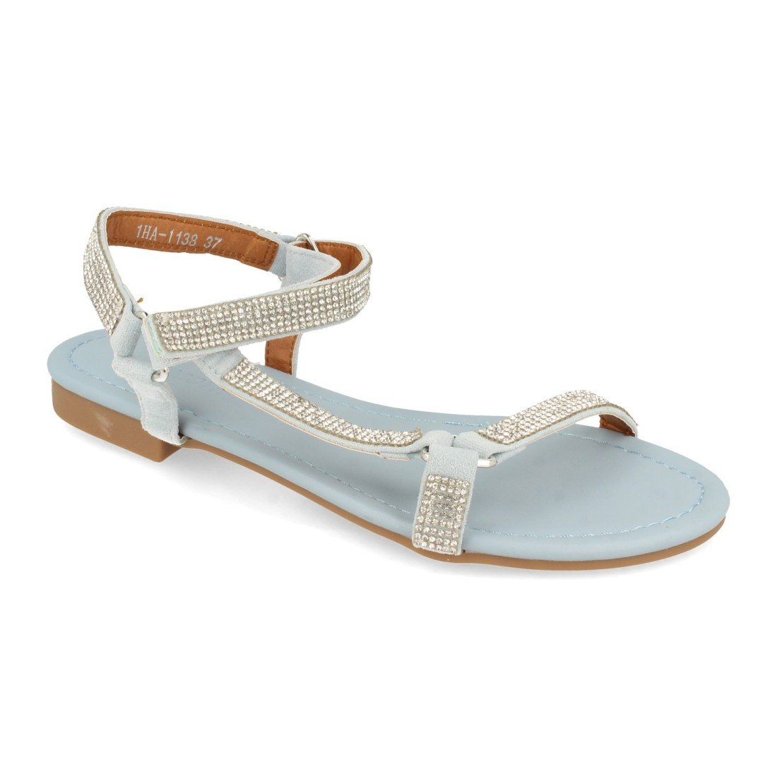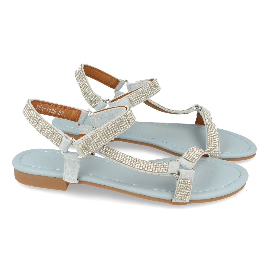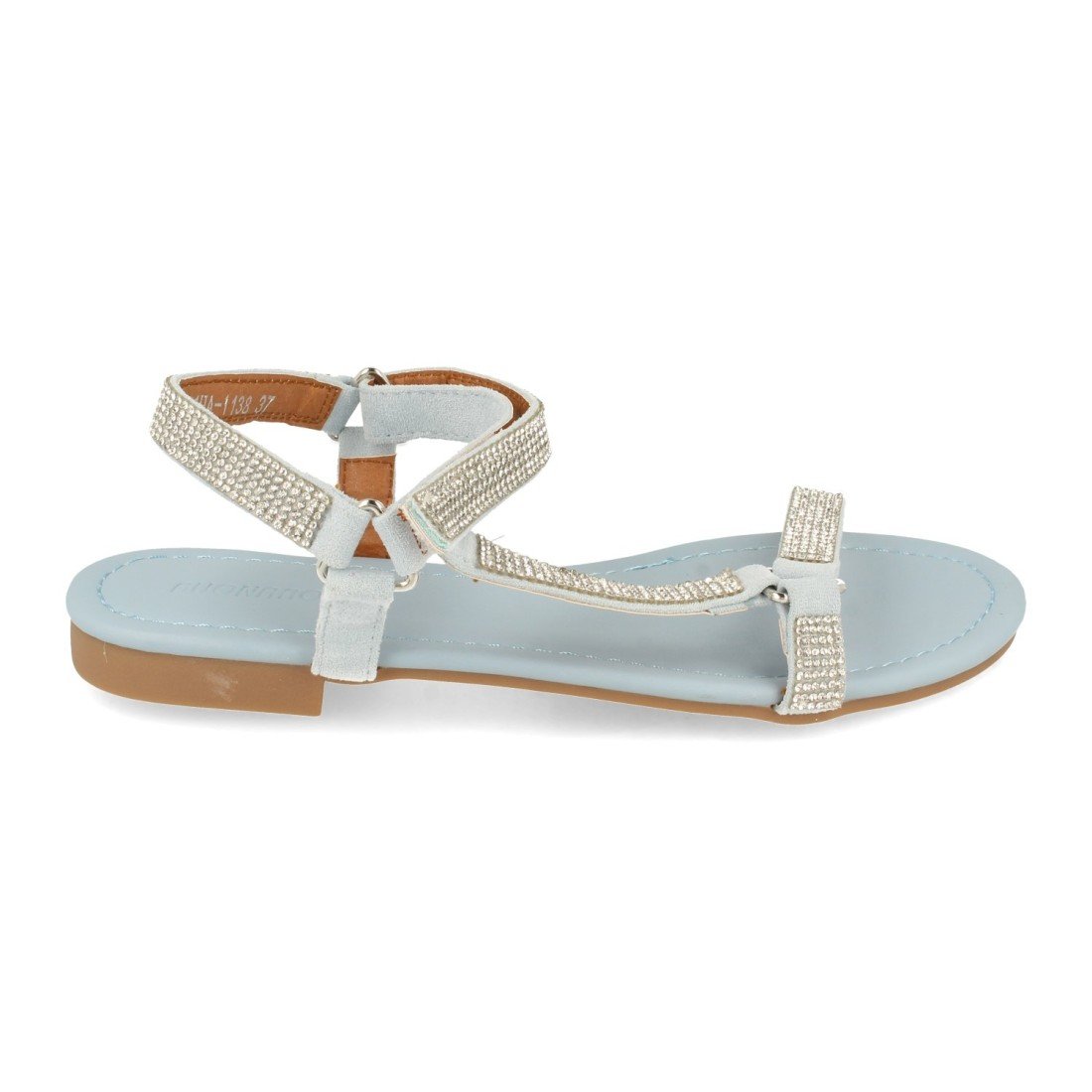 Sandalia Plana con Strass y Velcro
