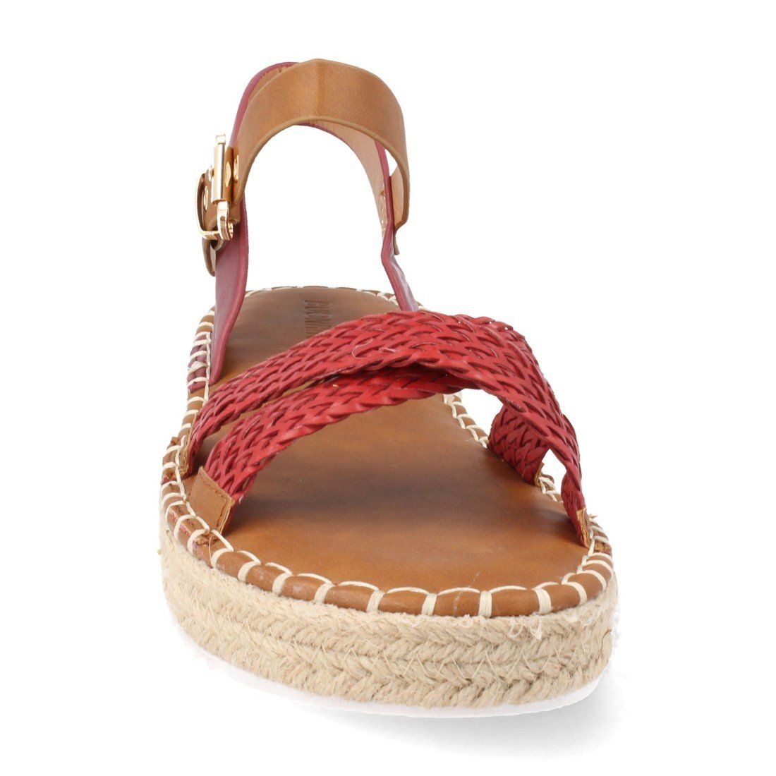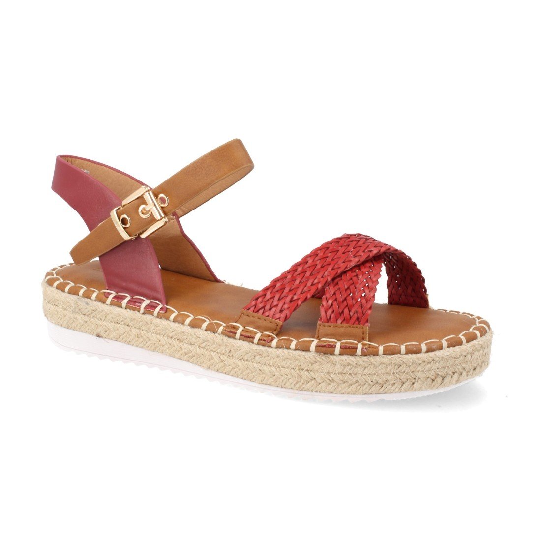 Sandalia plana con plataforma de yute, palas cruzadas y cierre de hebilla en el tobillo.