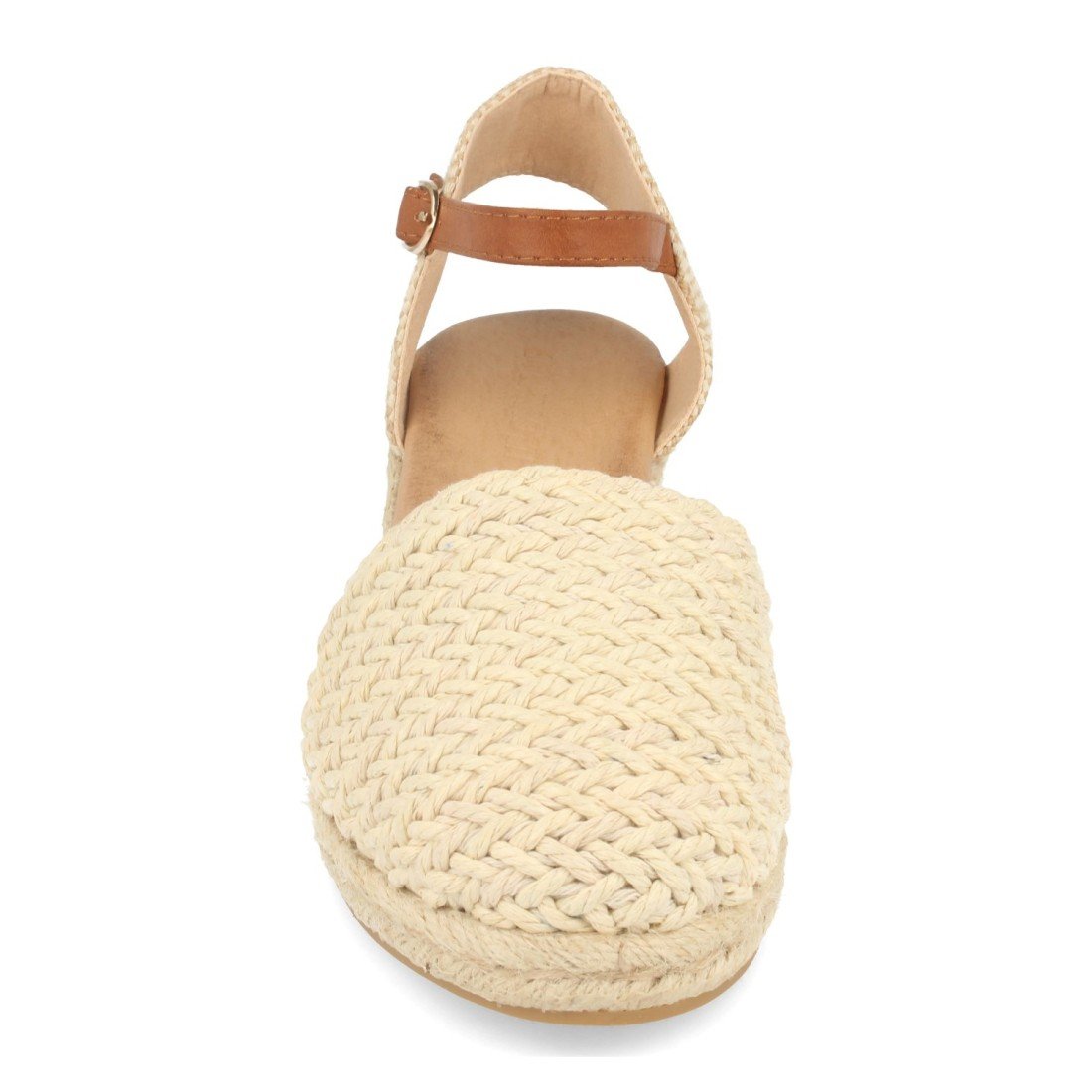 Sandalia para Mujer con Cuña de Yute, Pala Cerrada de Rafia, Talon Abierto y Cierre de Hebilla Primavera Verano 2023
