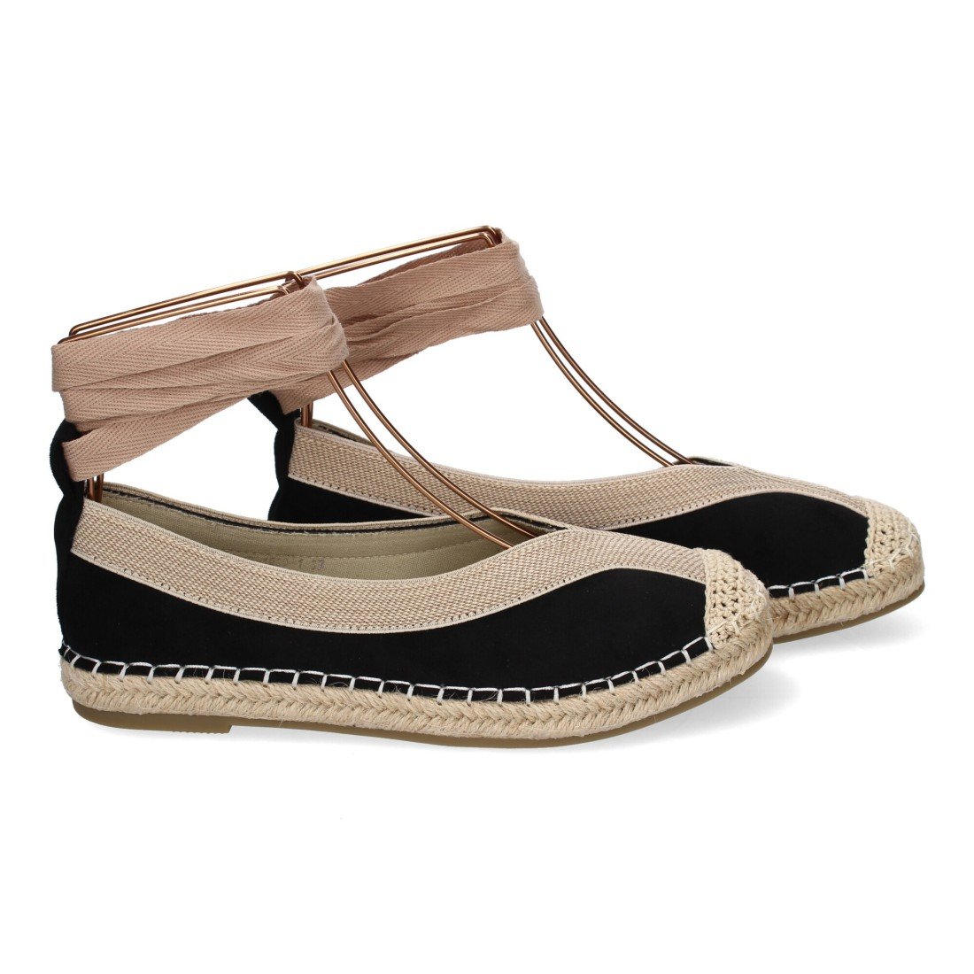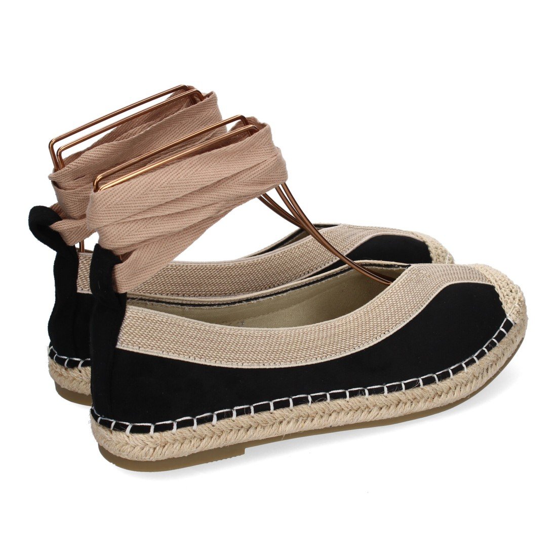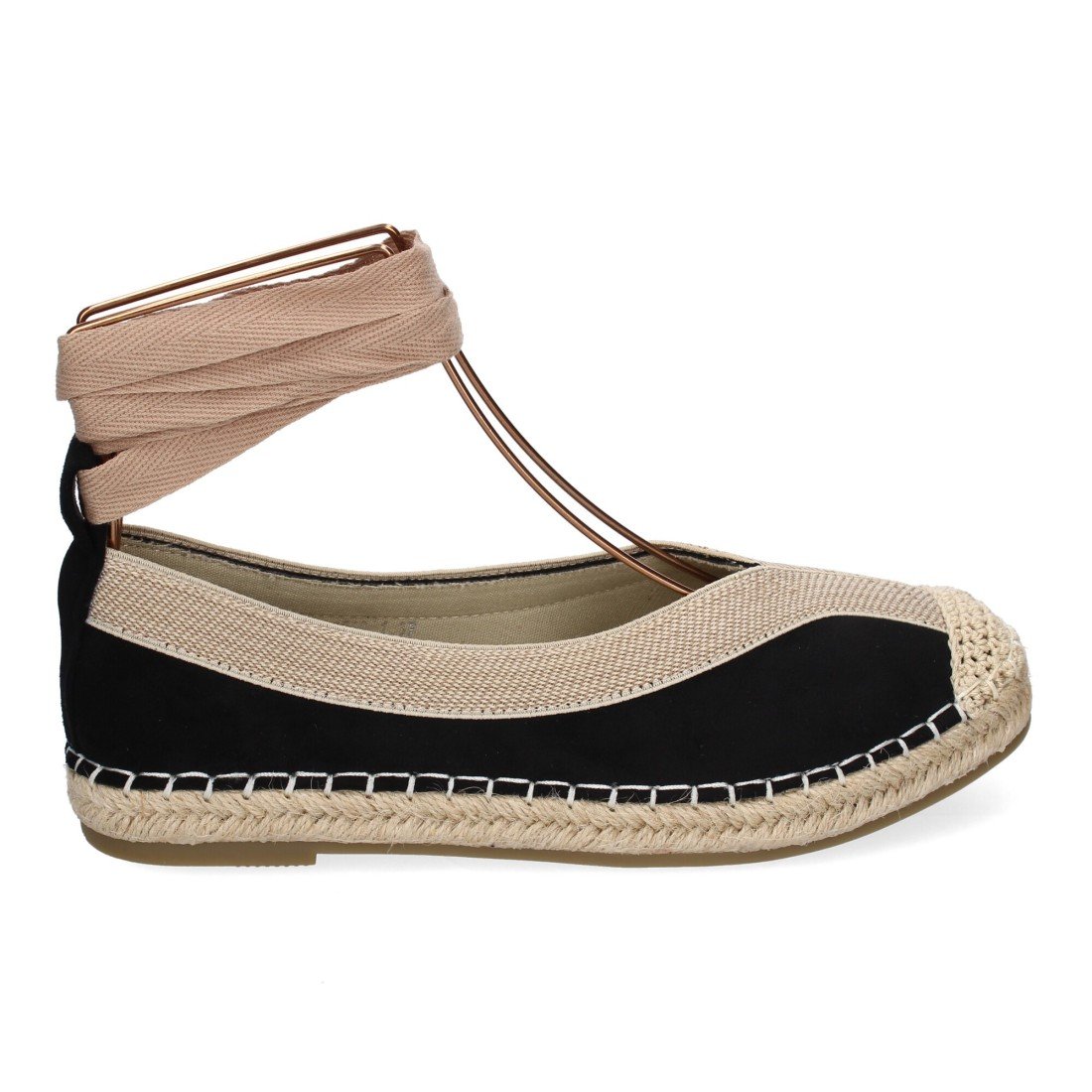 Bailarina de Mujer con Yute, Diseño Moderno con Puntera Bordada y Cintas