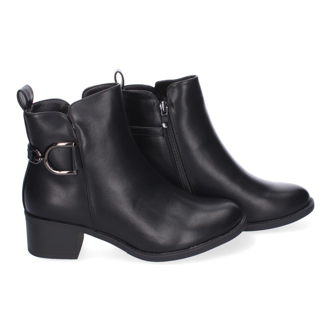 Botines de Tacón para Mujer, Comodos y Elegantes con Detalle de Hebilla, Punta Redonda y Cierre de Cremallera Lateral, Ideales para Otoño-Invierno.