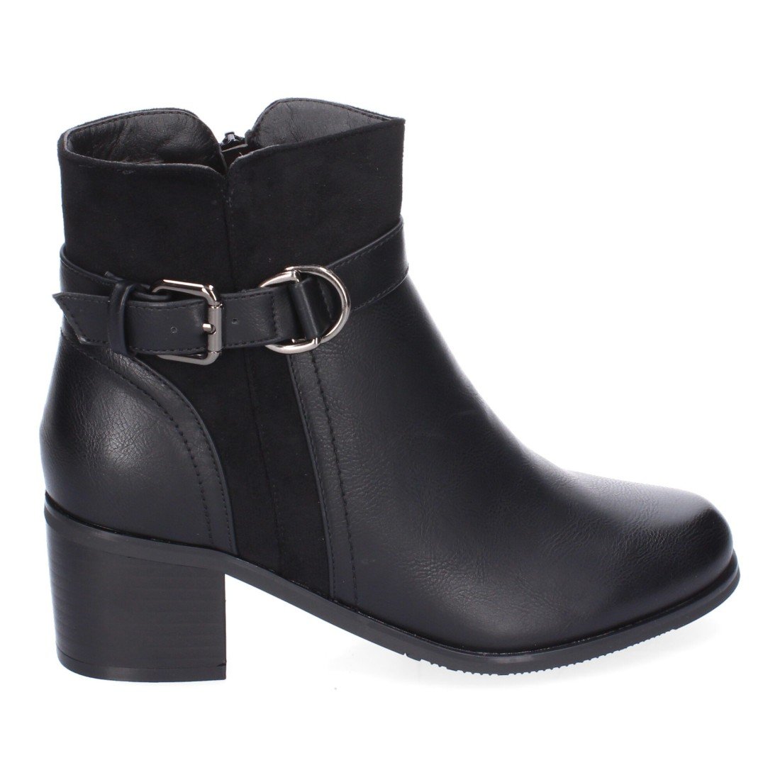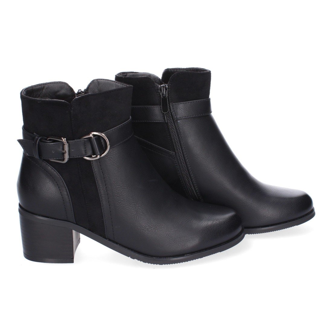 Botines de Tacón para Mujer, Comodos y Elegantes con Detalle de Hebilla, Punta Redonda y Cierre de Cremallera Lateral, Ideales para Otoño-Invierno.