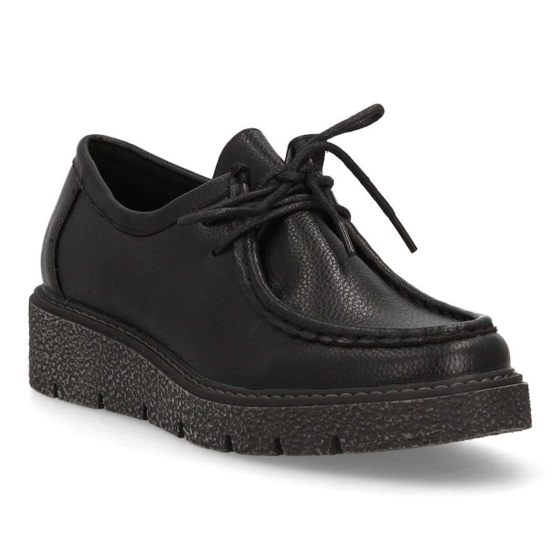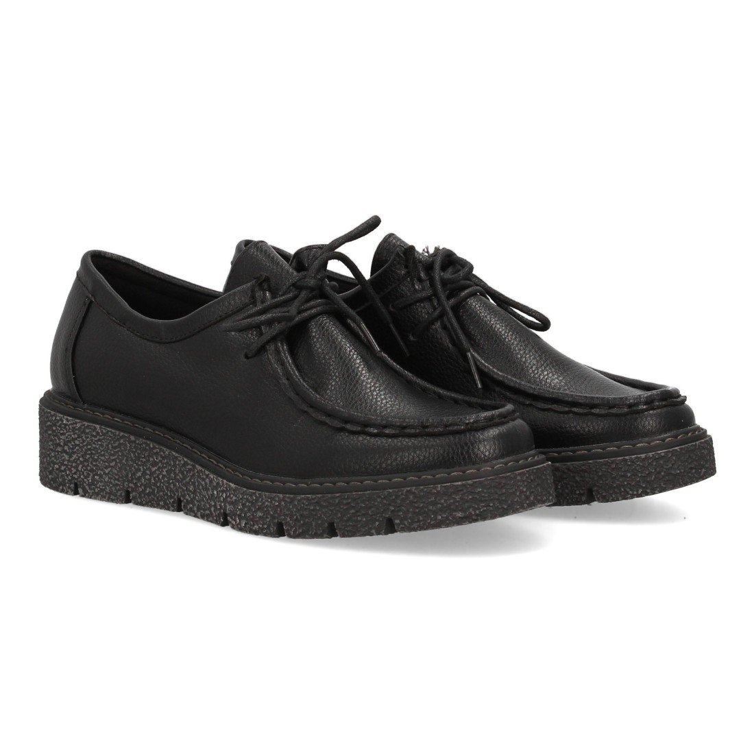 Zapato tipo mocasín con cuña y cordones para mujer. Diseño cerrado y suela gruesa. Ideal otoño invierno.