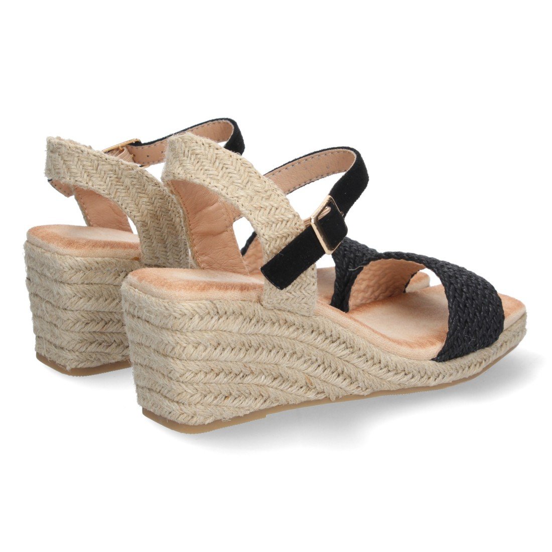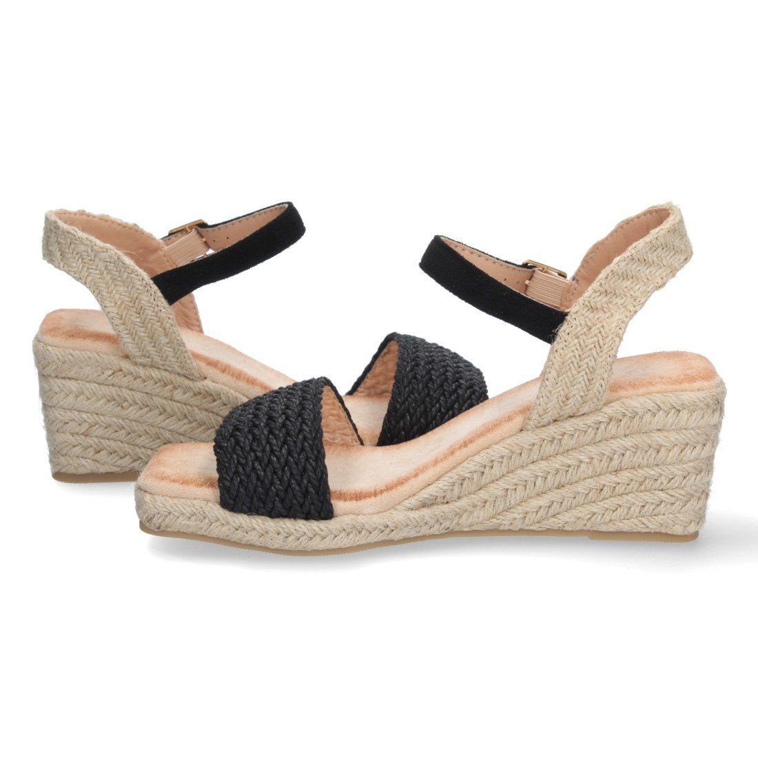 Sandalia de Cuña para Mujer, Comoda, Forrada de Yute, Pala Trenzada, y Cierre de Hebilla, Primavera Verano 2023