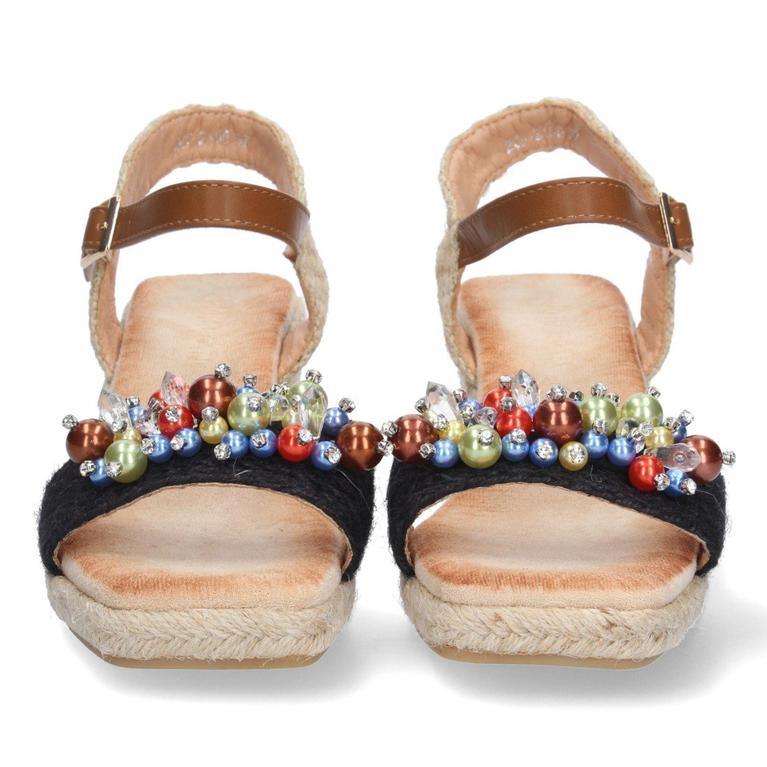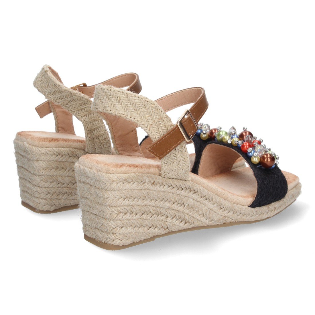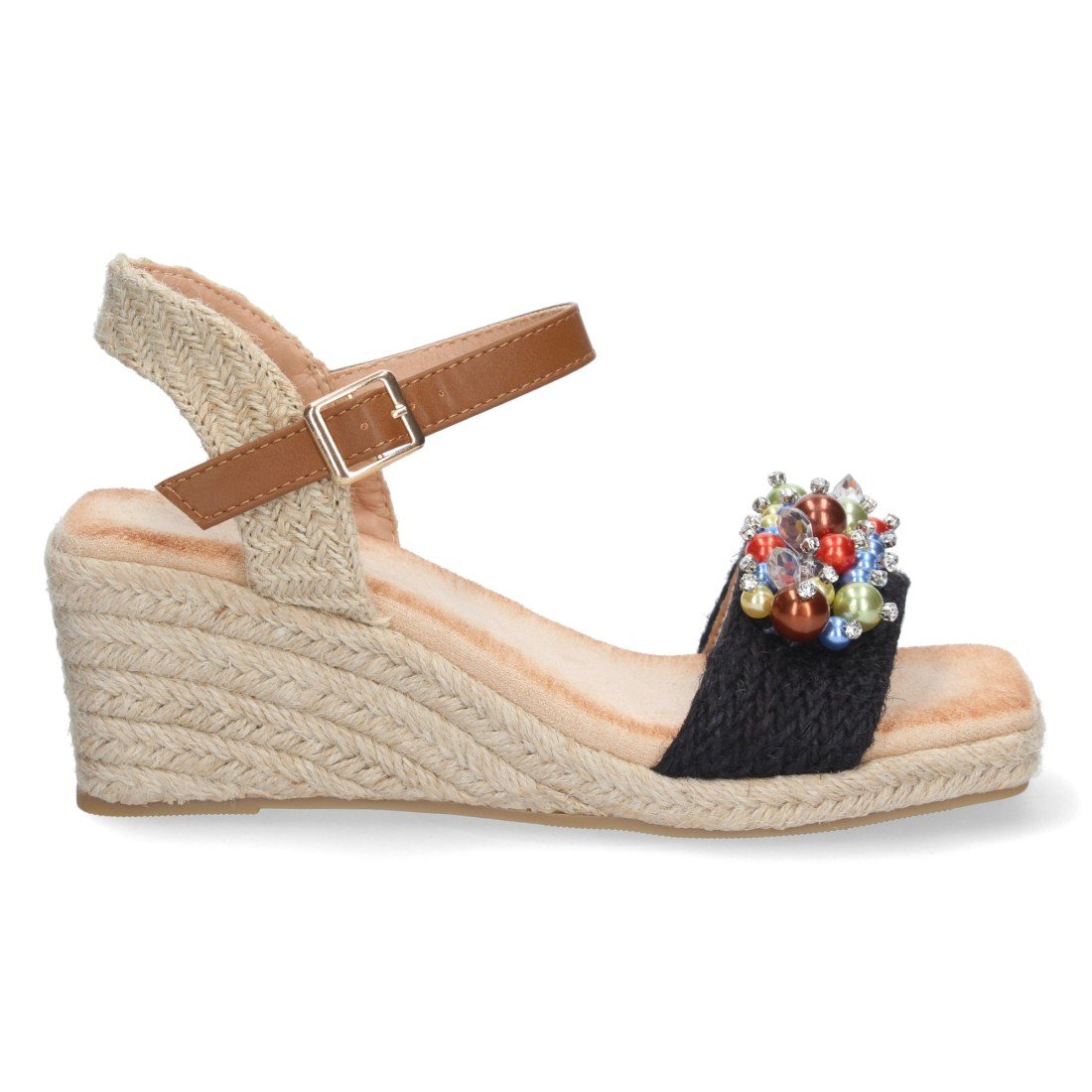 Sandalia de Cuña para Mujer, Comodo, Forrado de Yute, con Bolitas Brillantes en la Pala, y Cierre de Hebilla, Primavera Verano 2023