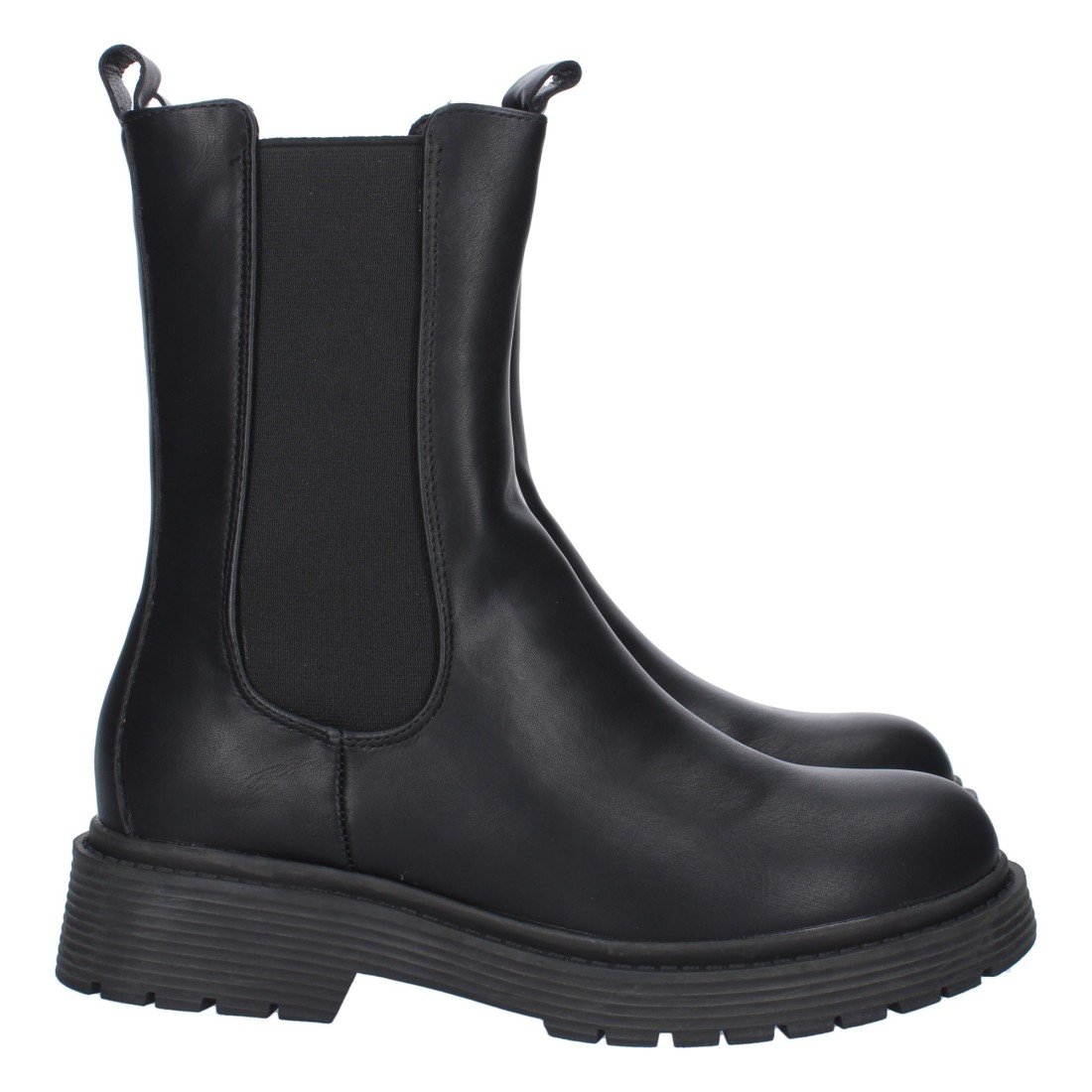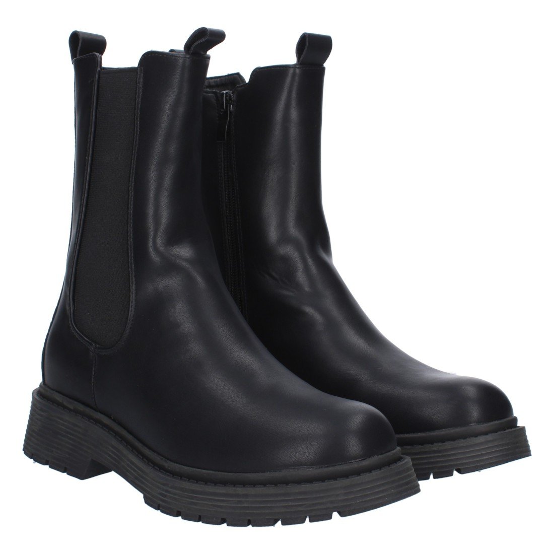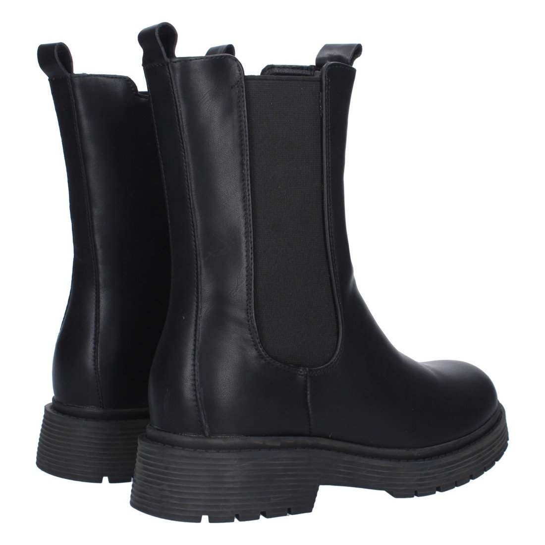 Botín militar plano con doble tirador y elástico en la caña. Estampado liso, temporada Otoño Invierno 2023.
